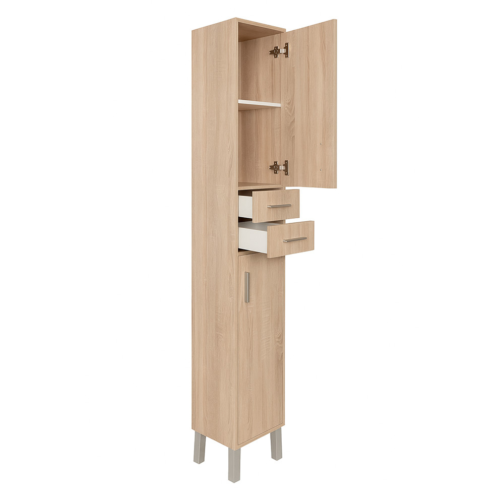 Dulap inalt de baie Leziter Nerva 35, stejar Sonoma, 2 usi si 2 sertare