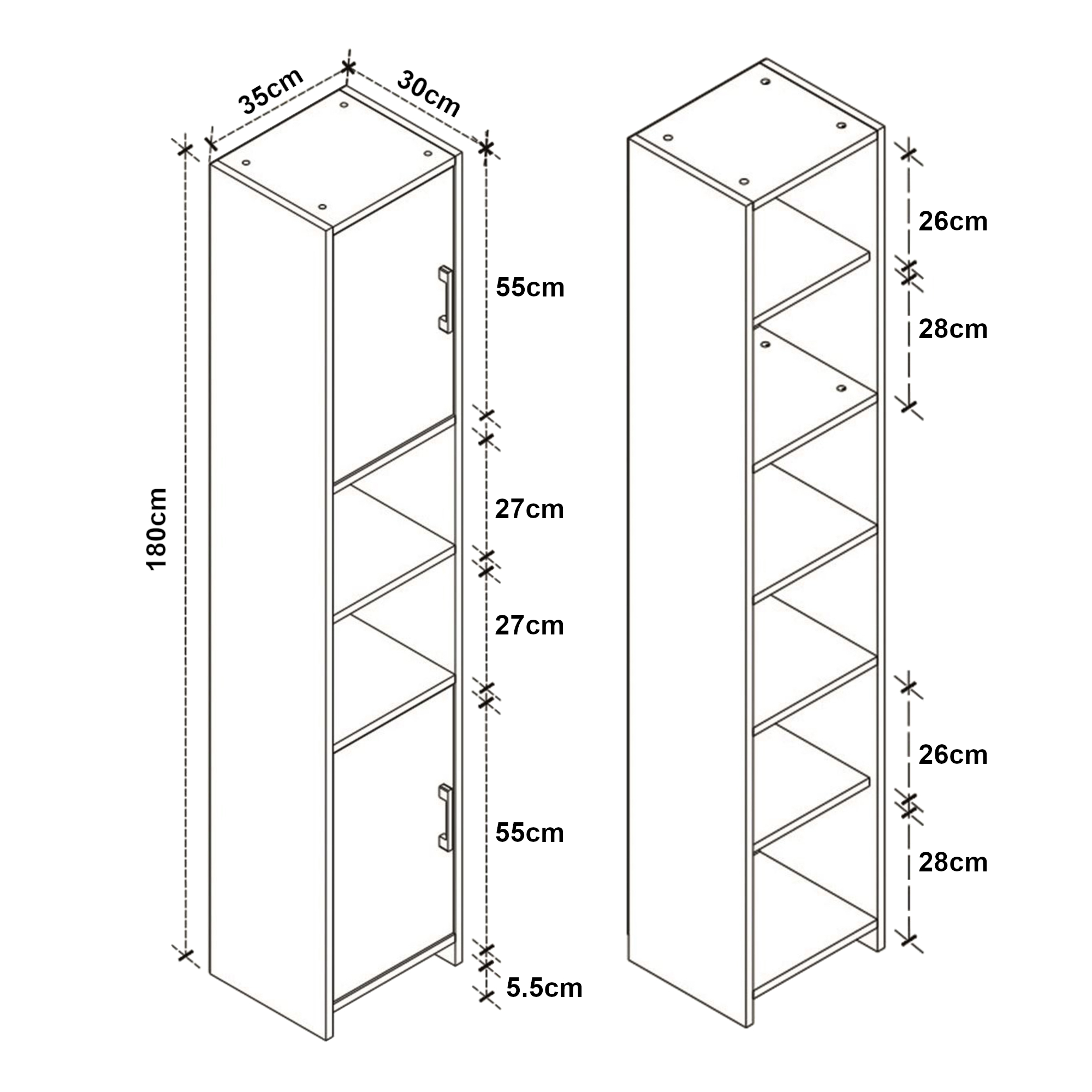- Dimensiuni totale (Î x l x A): 180 x 35 x 30 cm
