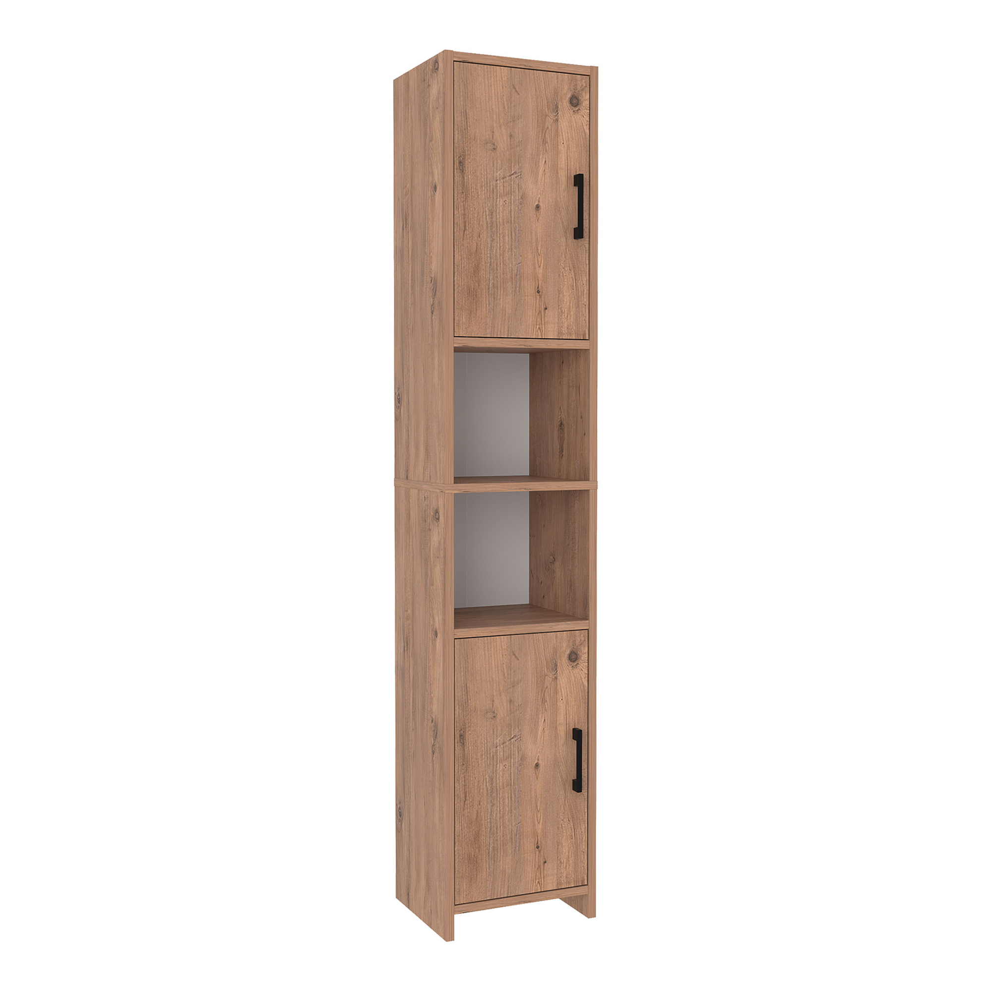 Dulapul înalt Rautrina este soluția ideală pentru organizarea eficientă a spațiului din bucătărie, baie sau alte încăperi. Cu un design modern, finisaj în nuanță stejar și format compact pe verticală, acest dulap înalt oferă spațiu generos de depozitare fără să ocupe mult loc la sol.