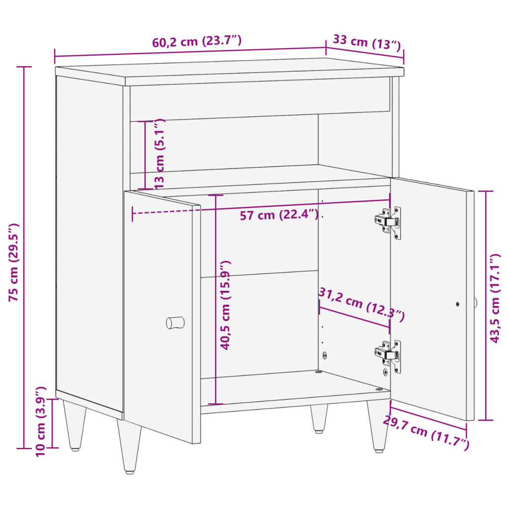 Dulap lateral, 60x33x75 cm, lemn masiv de mango GartenMobel Dekor