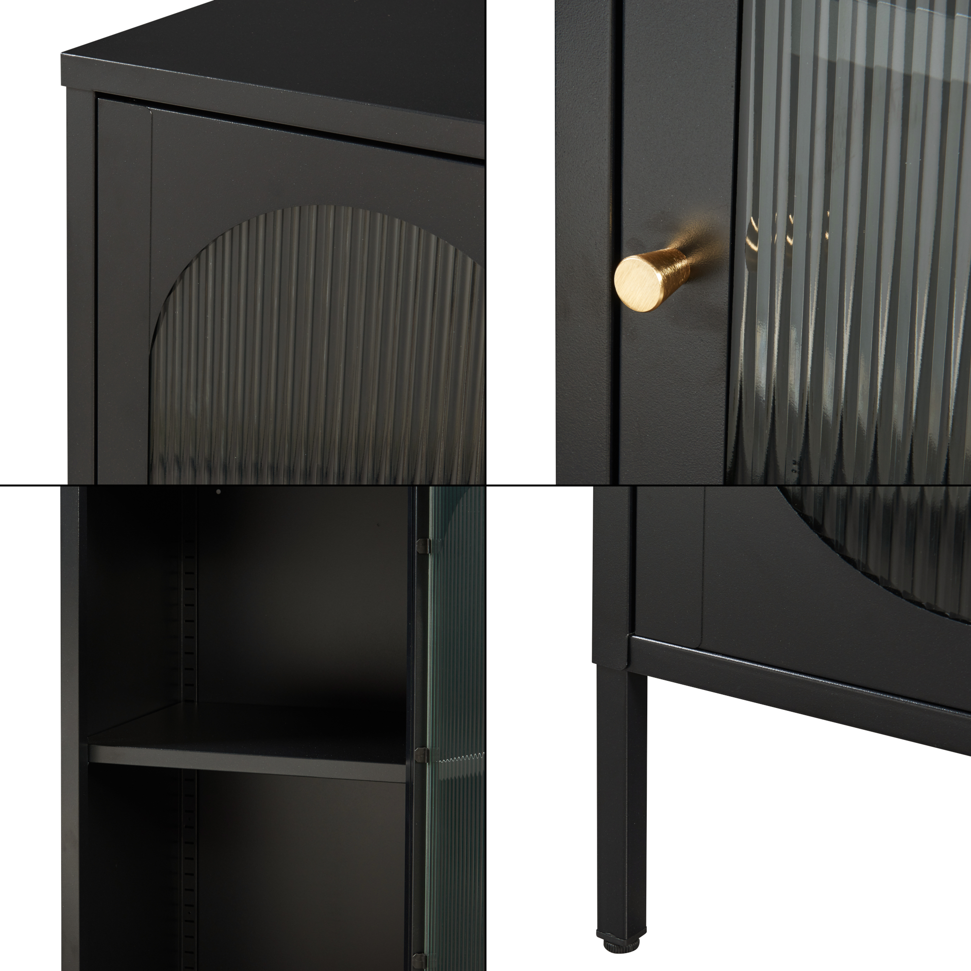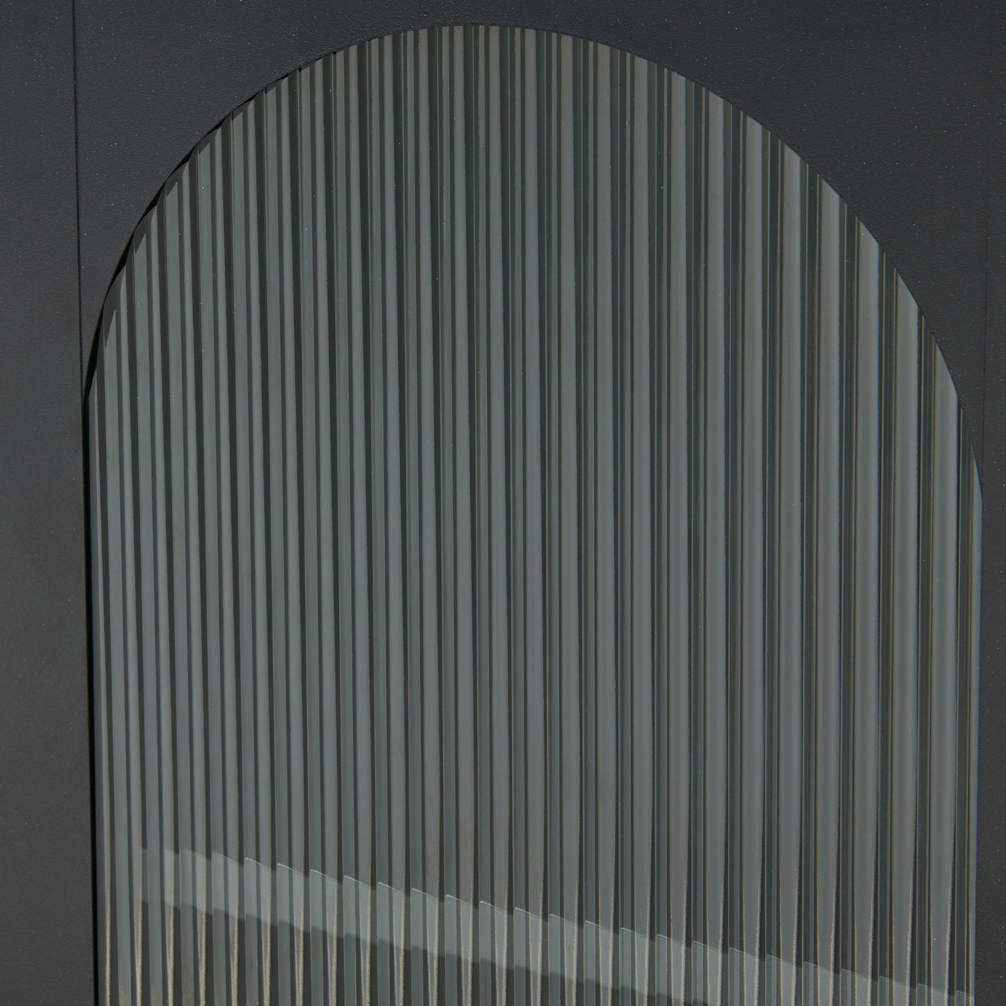 Dulap lateral Karlskrona – o alegere inspirată pentru organizarea elegantă a spațiului din living, hol sau birou. Cu un design modern, finisaj negru mat și ușă decorativă din sticlă riflată, acest dulap metalic adaugă stil și funcționalitate în orice încăpere.