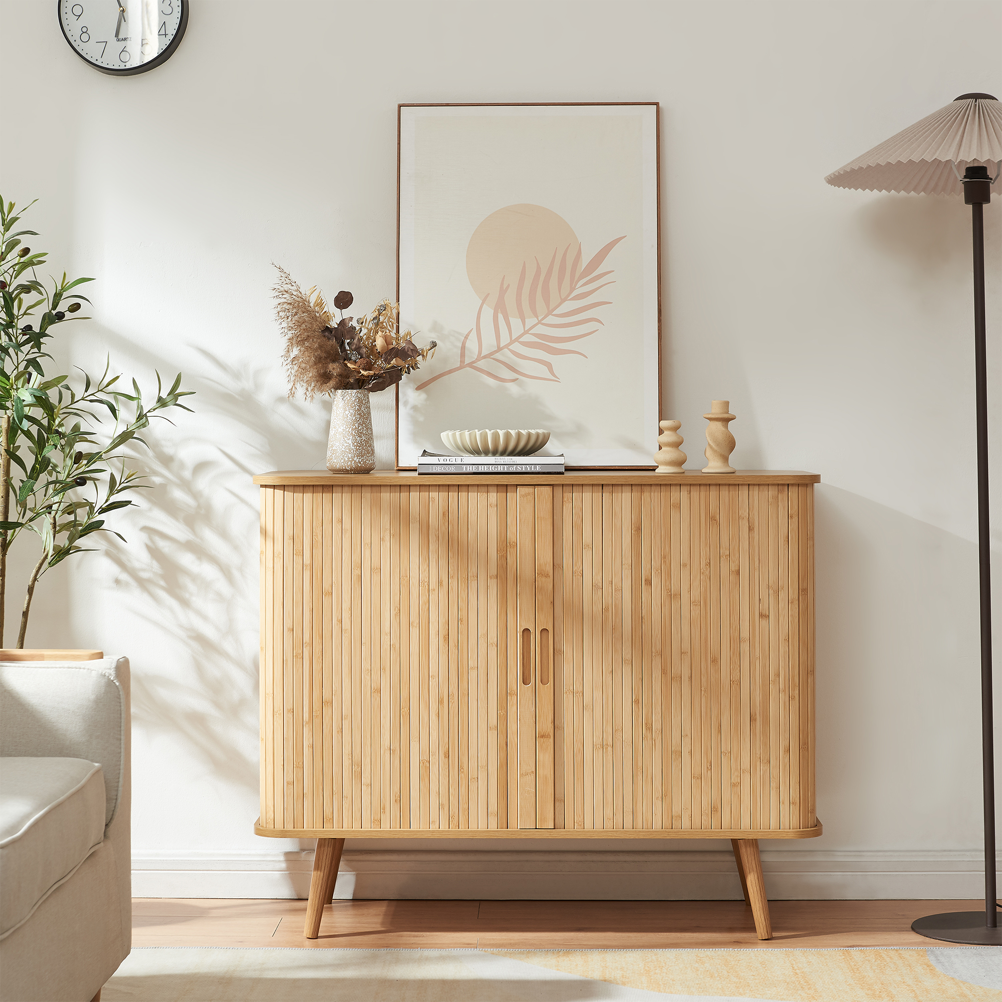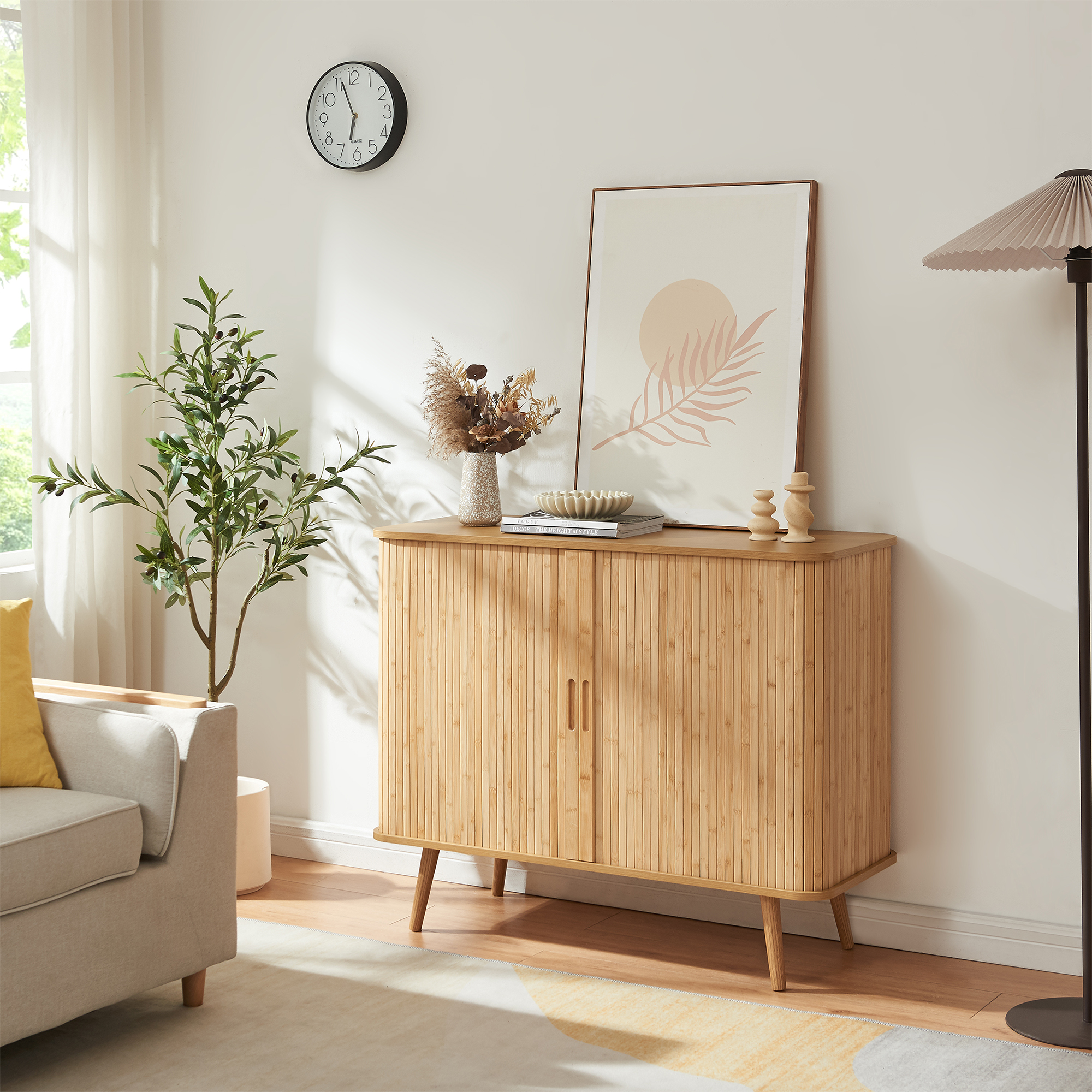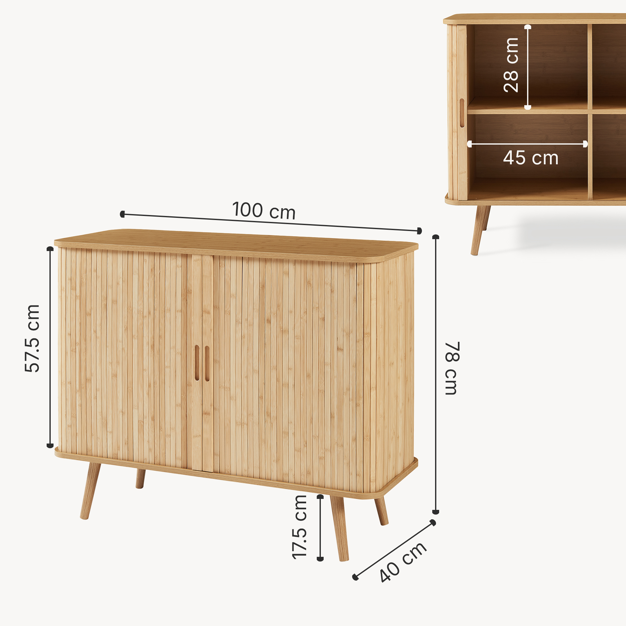 Dulap lateral Nordkapp din bambus, 2 uși glisante, 100x40x80 cm