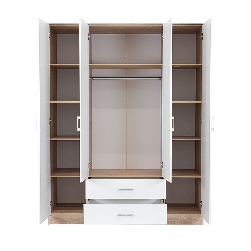 Dulap Leziter Miami 160x205 cm, alb cu stejar Sonoma, 11 rafturi
