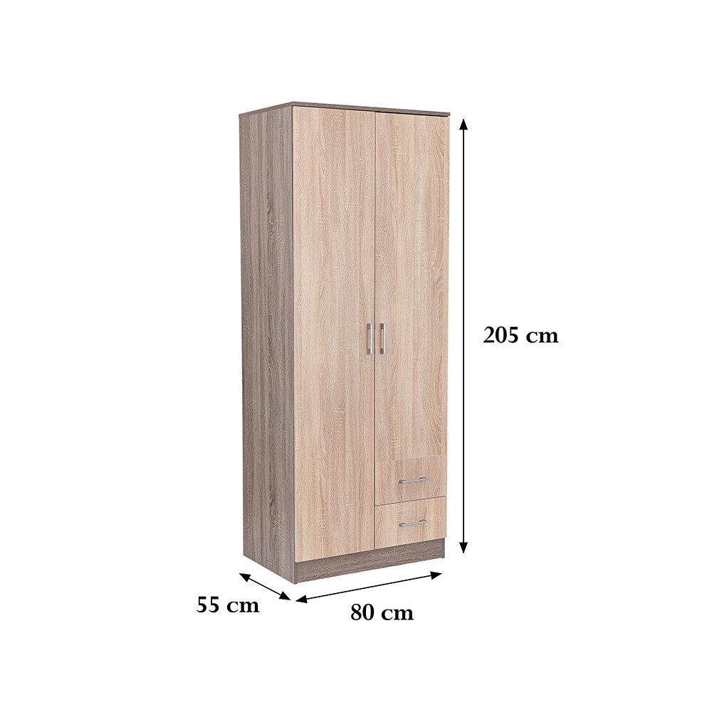 Utilizare recomandată: ideal ca dulap pentru dormitor, cameră de oaspeți, hol sau camera copilului, pentru depozitarea hainelor, lenjeriei și accesoriilor. Se livrează ambalat plat, pentru transport mai ușor și asamblare acasă.