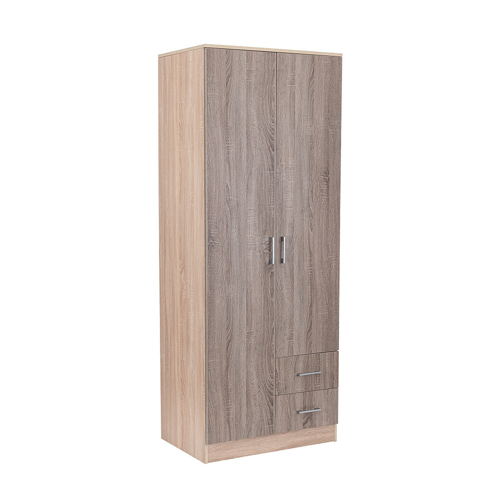 Dulap Leziter Miami 80x205 cm, stejar York/stejar Sonoma, 2 usi si 2 sertare