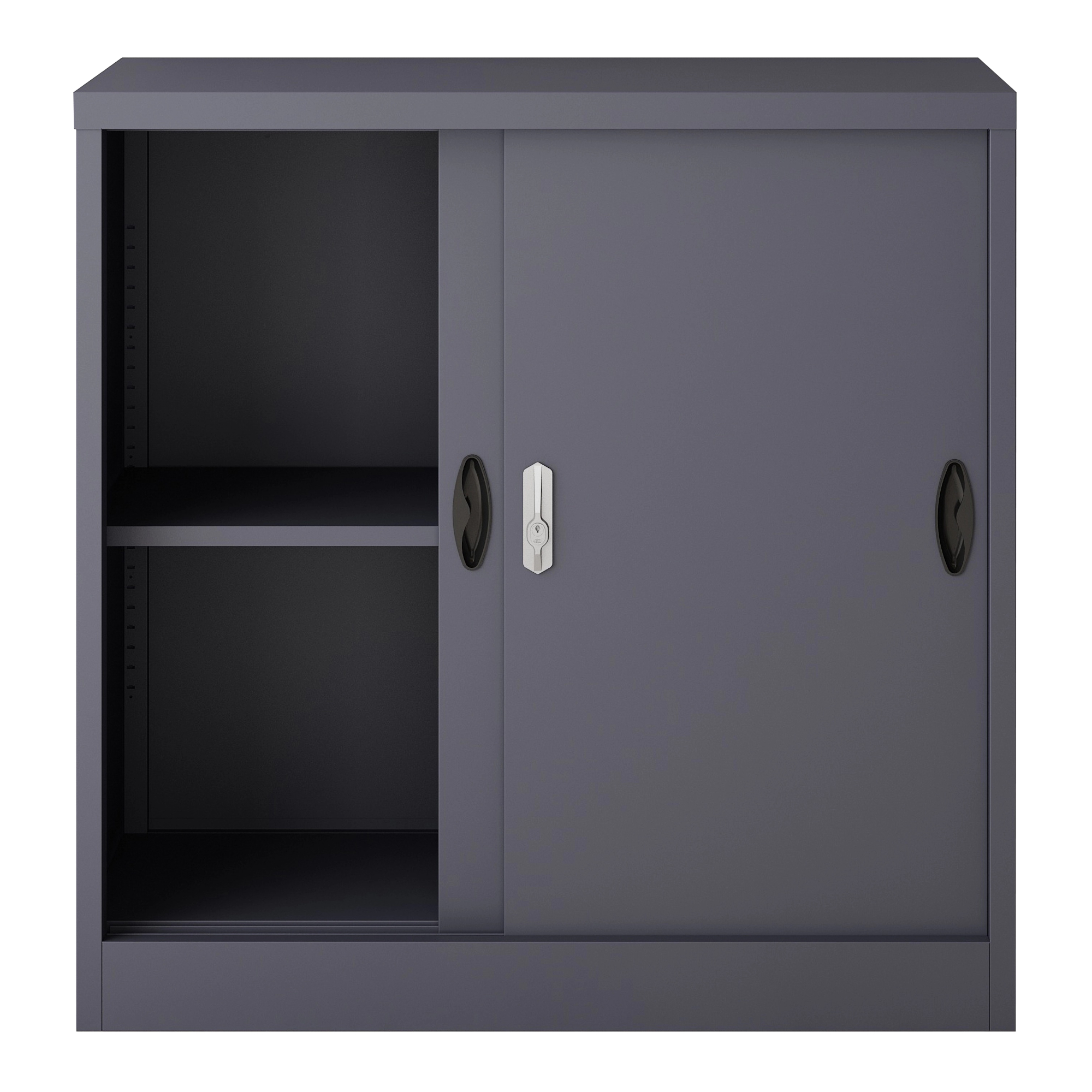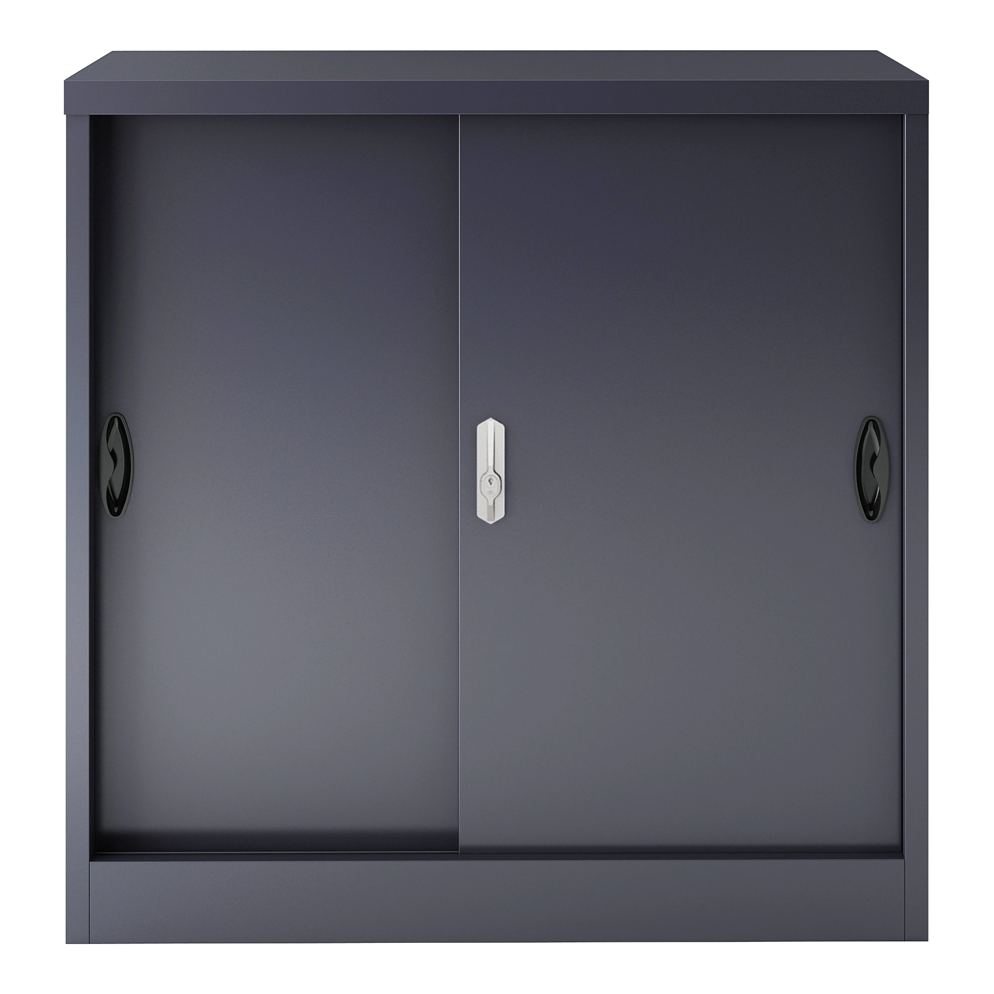 Dulap metalic de birou Rieti cu uși glisante, 90x40x90 cm, gri închis