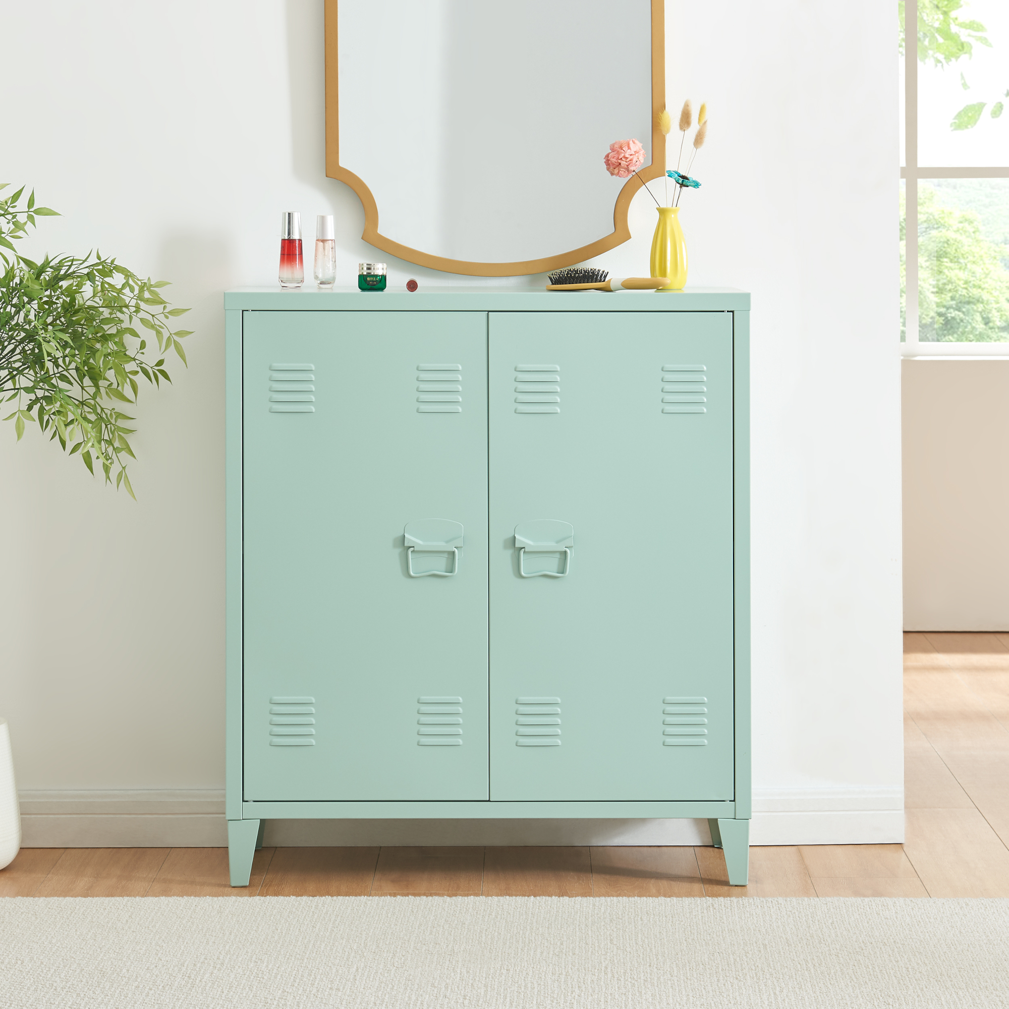 Dulap metalic Oripää cu 2 uși și raft reglabil, verde pastel, 90x80x33 cm