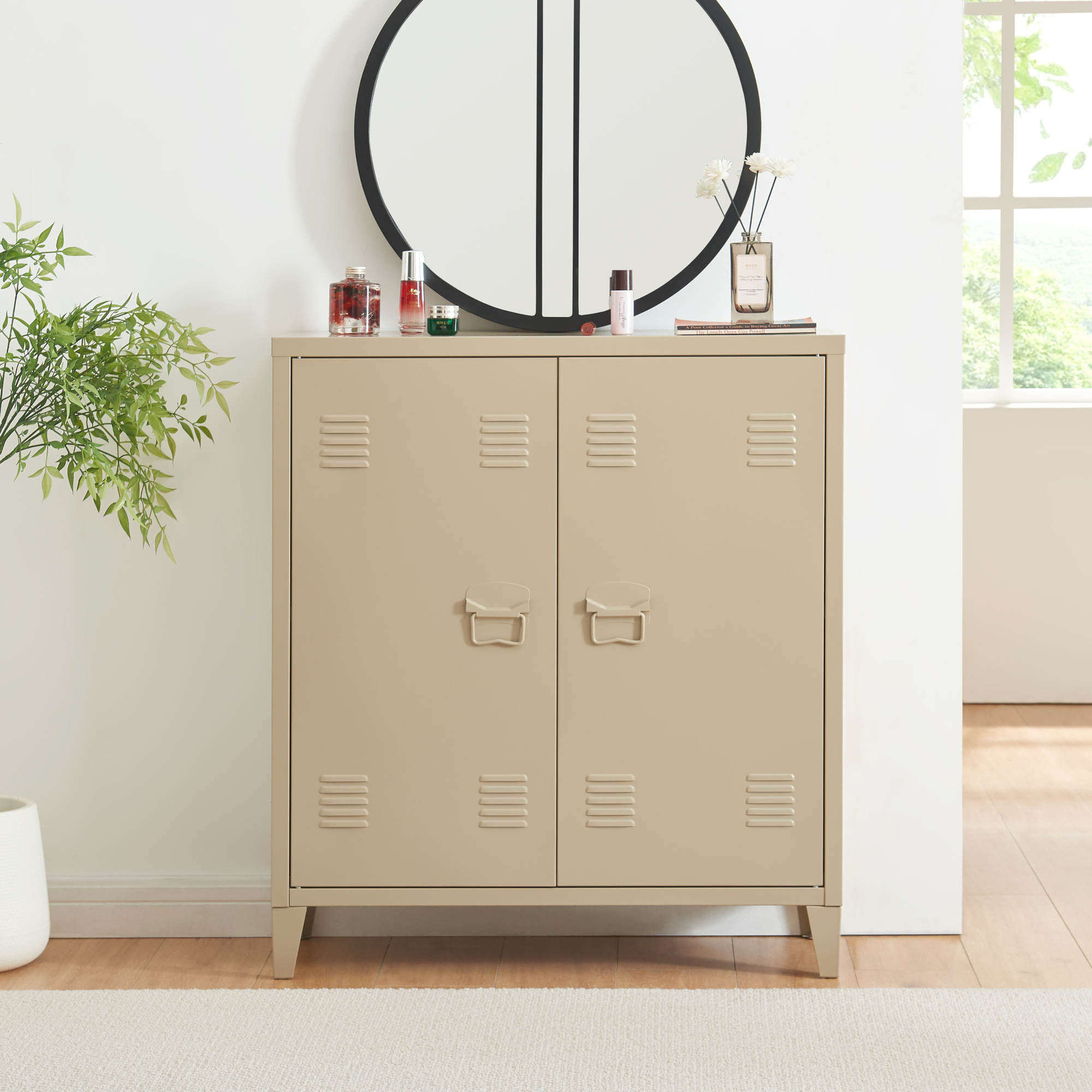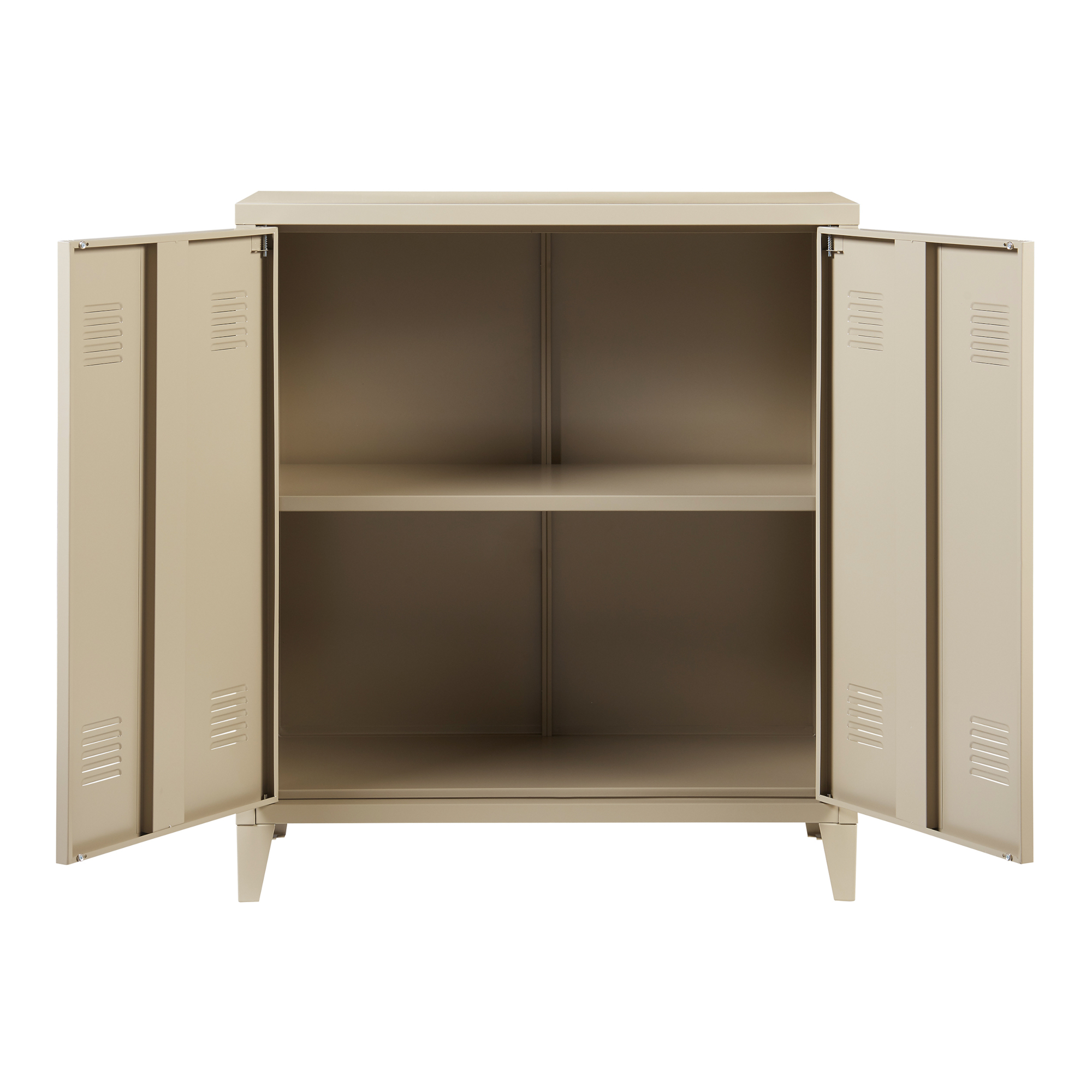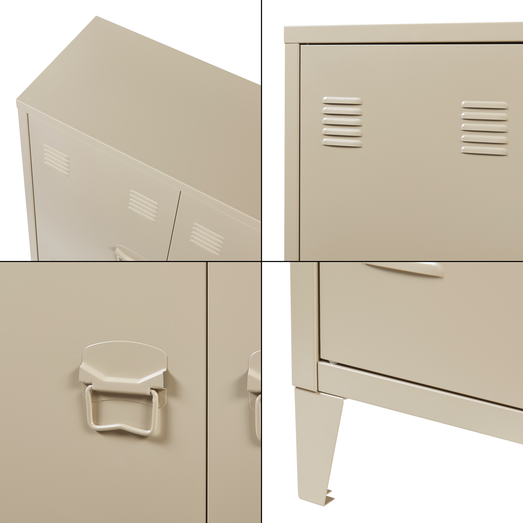 Prevazut cu doua usi cu inchidere magnetica si manere rezistente, dulapul ofera acces rapid si comod la continut. Fantele de ventilatie integrate in usi contribuie la o circulatie eficienta a aerului, fiind utile pentru pastrarea in bune conditii a documentelor sau a altor obiecte sensibile.