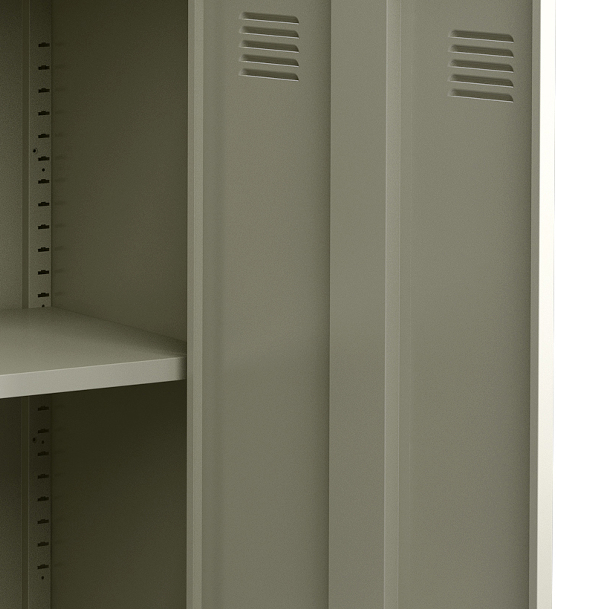 La interior, dulapul este dotat cu un raft reglabil pe inaltime, astfel incat sa poti adapta spatiul in functie de nevoile tale. Este potrivit pentru depozitarea dosarelor, rechizitelor, uneltelor usoare sau diverselor articole necesare in activitatea zilnica.