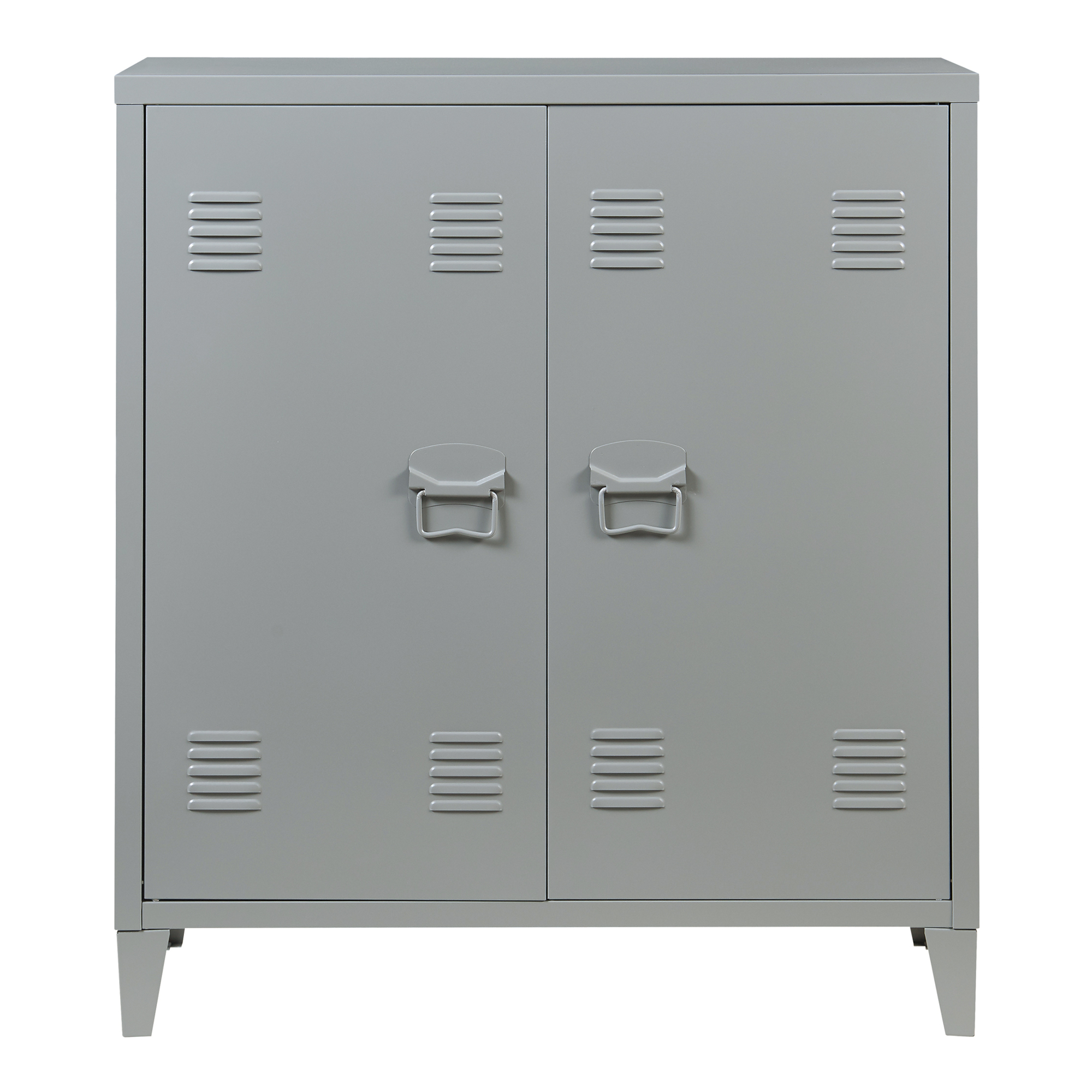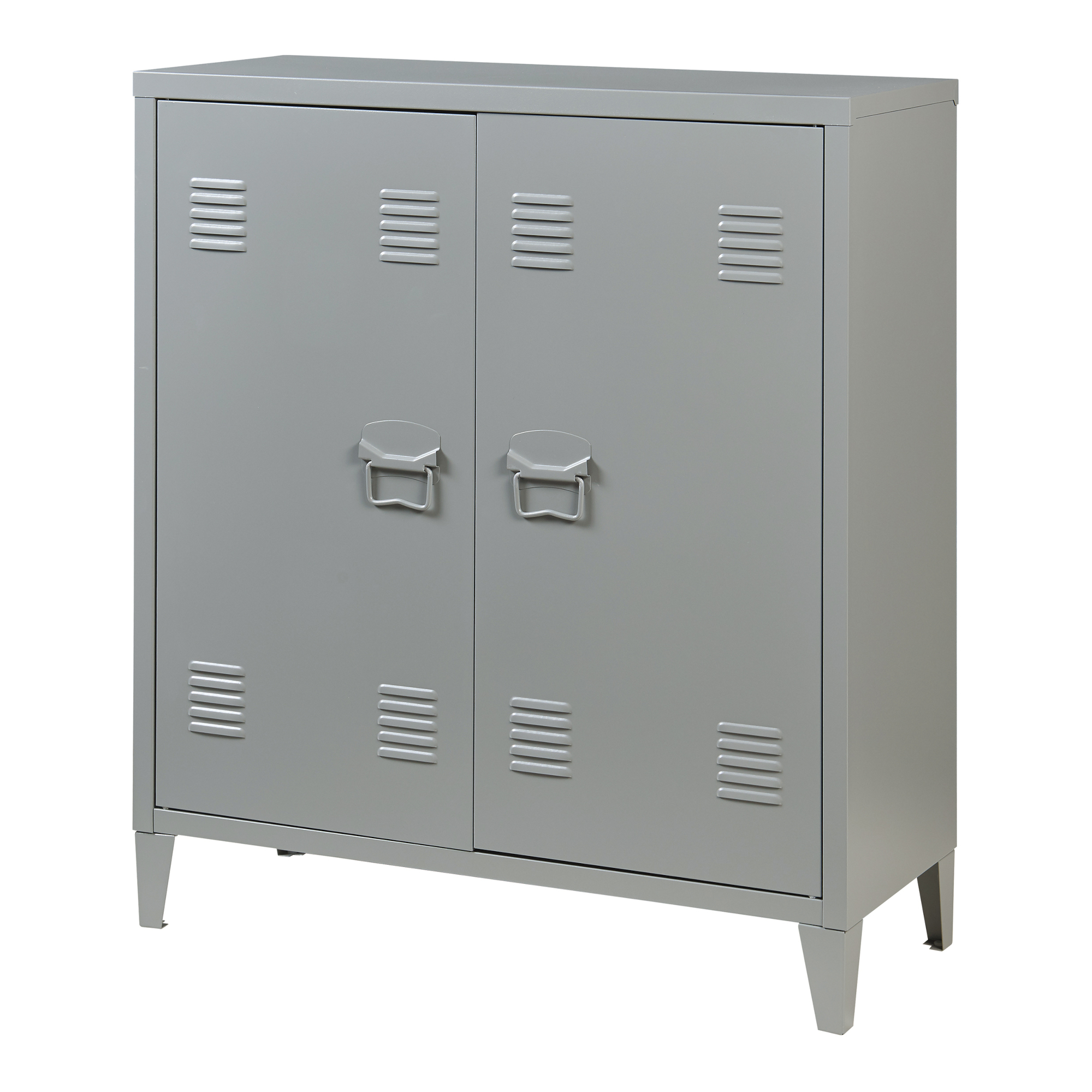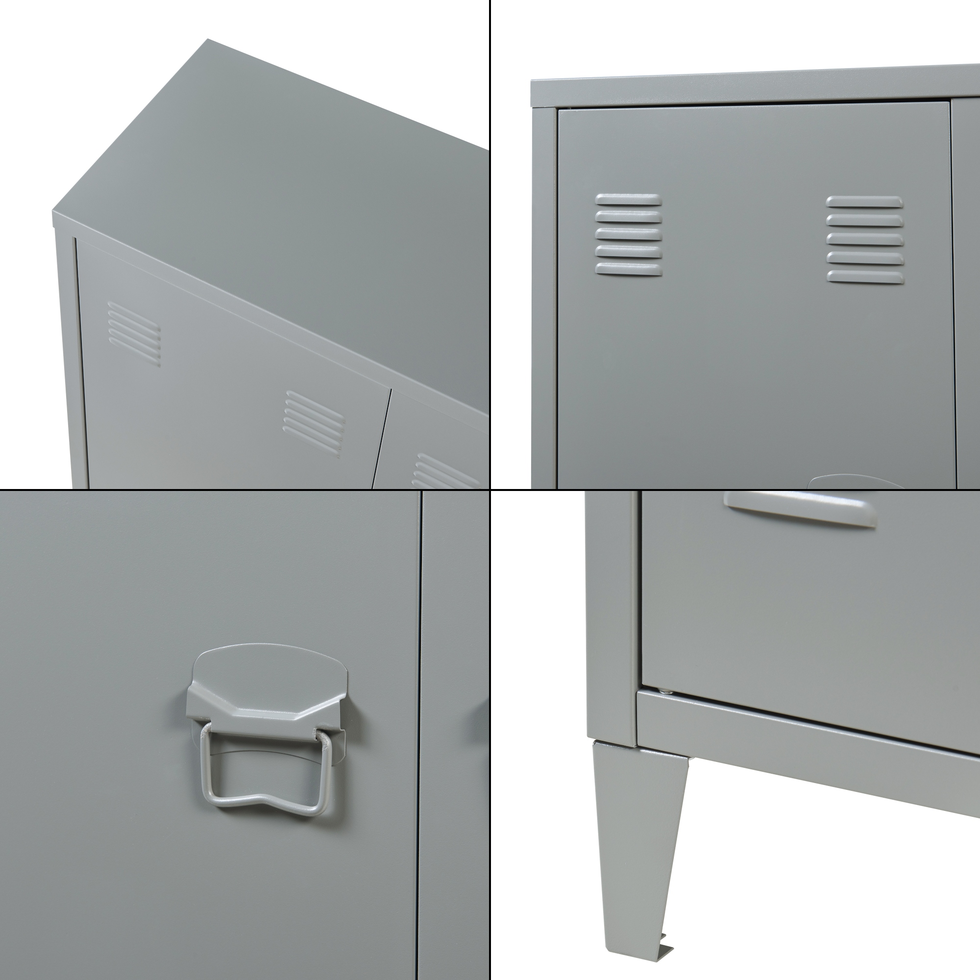 Prevăzut cu două uși, poliță interioară reglabilă pe înălțime și fante de ventilație, dulapul oferă depozitare practică și o bună circulație a aerului, fiind potrivit inclusiv pentru documente sau obiecte sensibile. Mânerele robuste și închiderea magnetică contribuie la o utilizare comodă zi de zi.