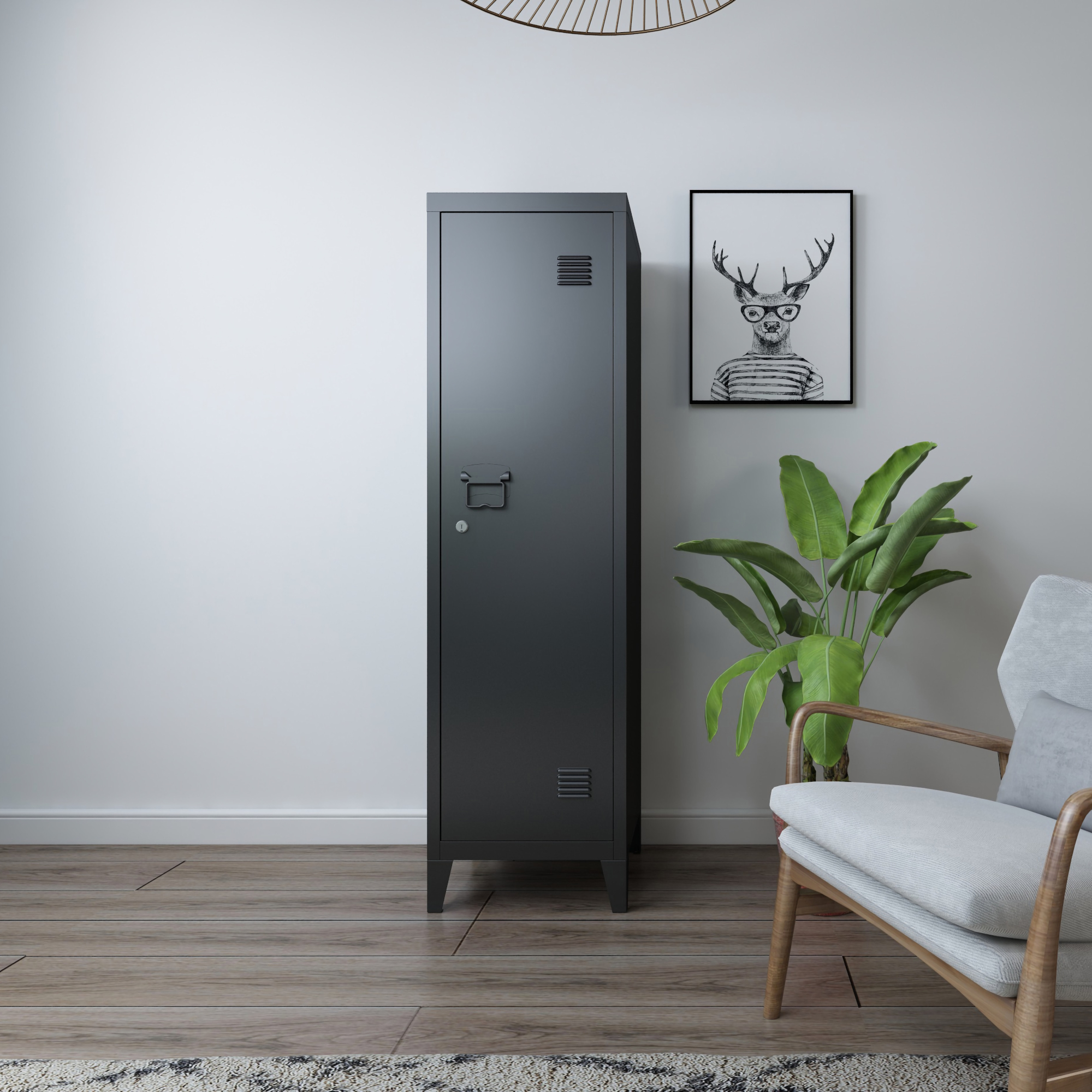 Dulap metalic vestiar cu cheie Kurikka, 137x38x38 cm, negru