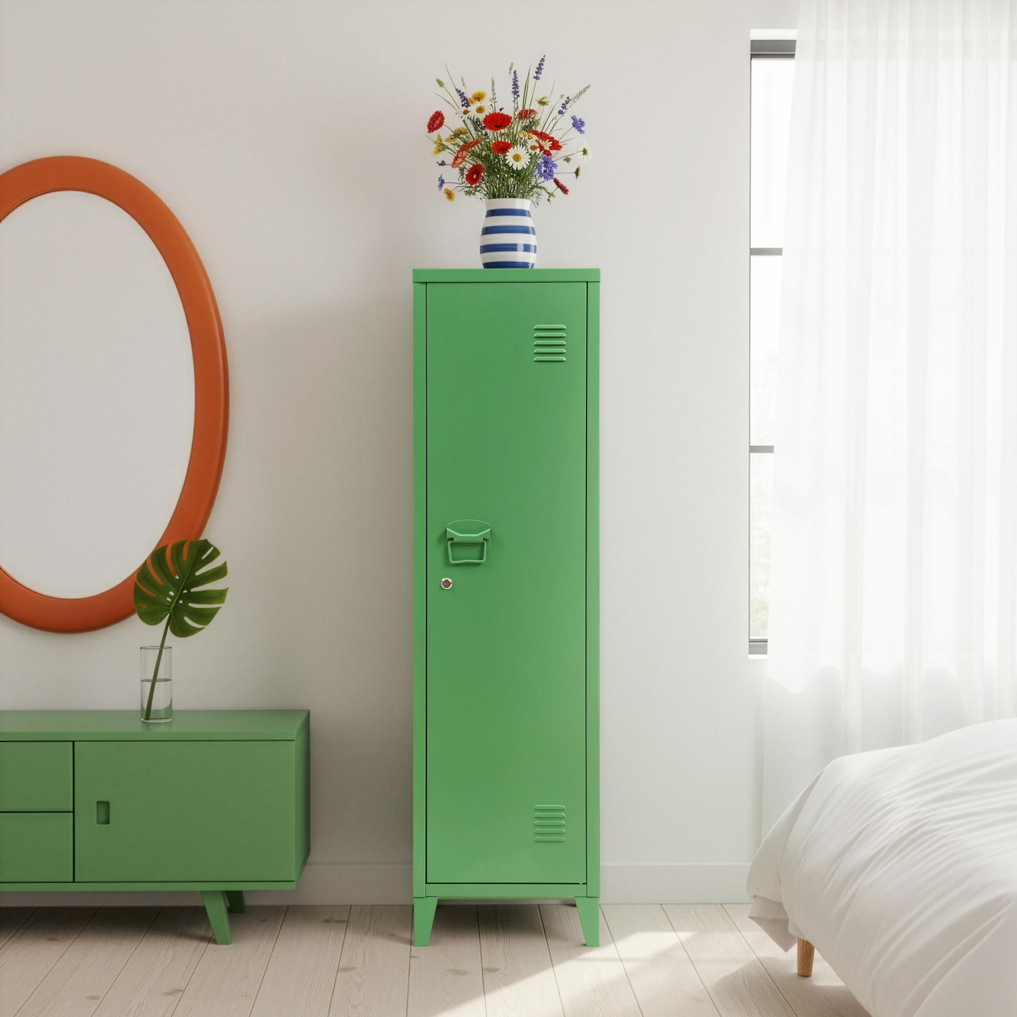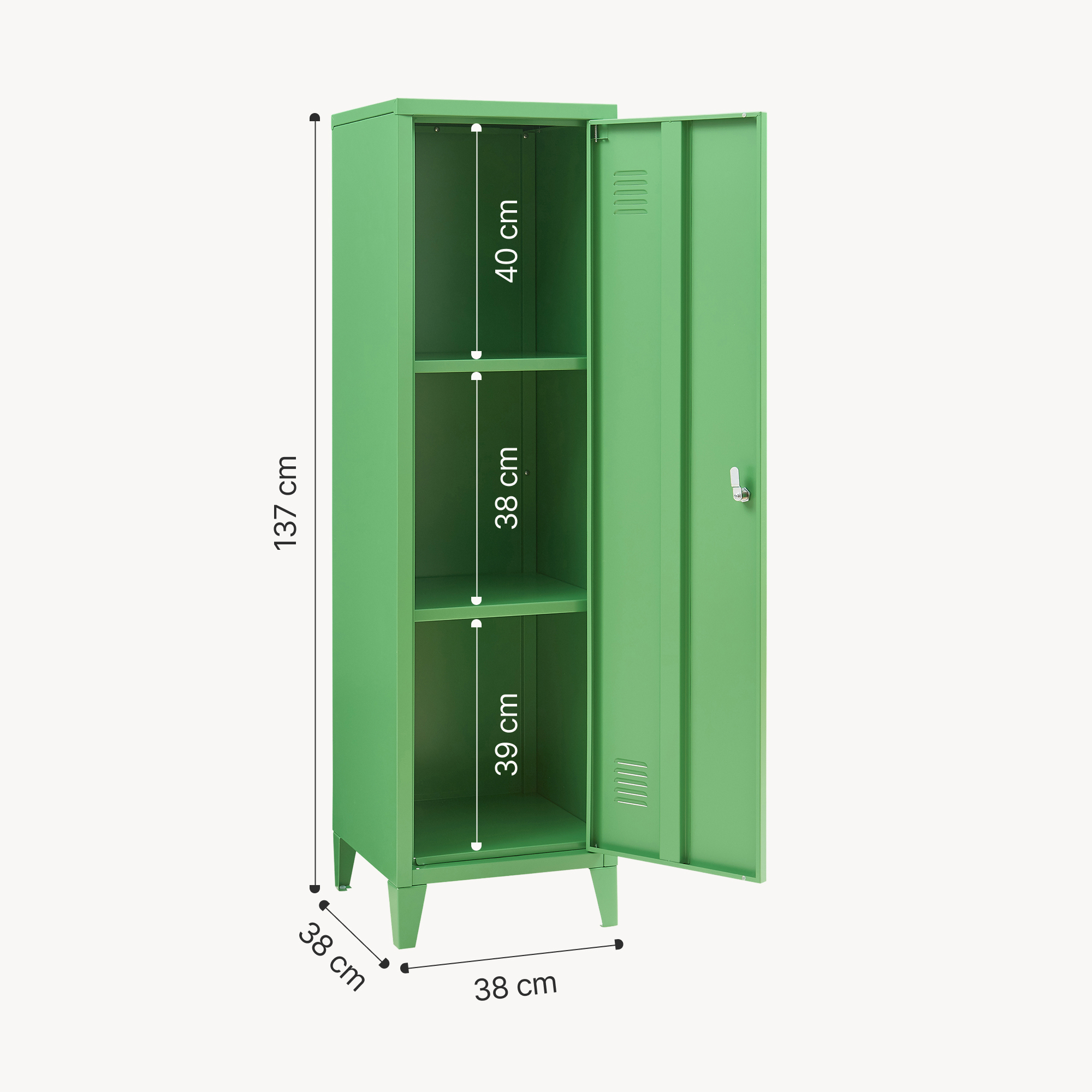 Dulap metalic vestiar cu cheie Kurikka, 137x38x38 cm, verde