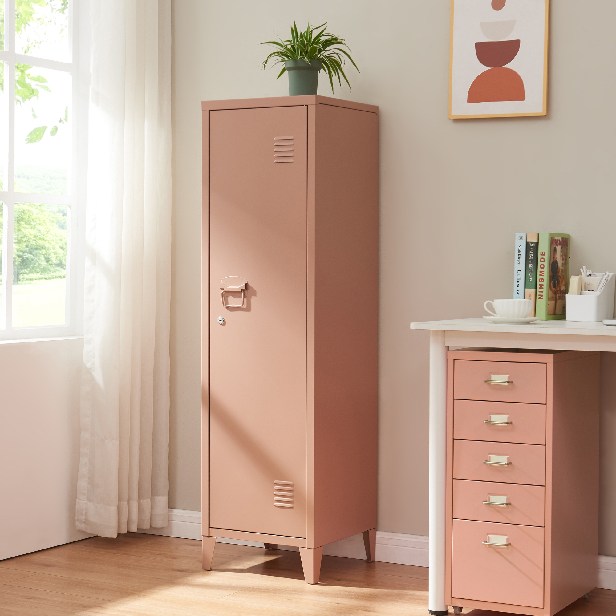 Dulapul metalic vestiar Kurikka este o soluție practică și elegantă pentru organizarea eficientă a hainelor, accesoriilor sau materialelor de lucru. Cu un design simplu, atemporal și o nuanță plăcută de maro deschis, acest dulap metalic cu 1 ușă se integrează ușor în birou, atelier, vestiar, hol sau spații de depozitare.
