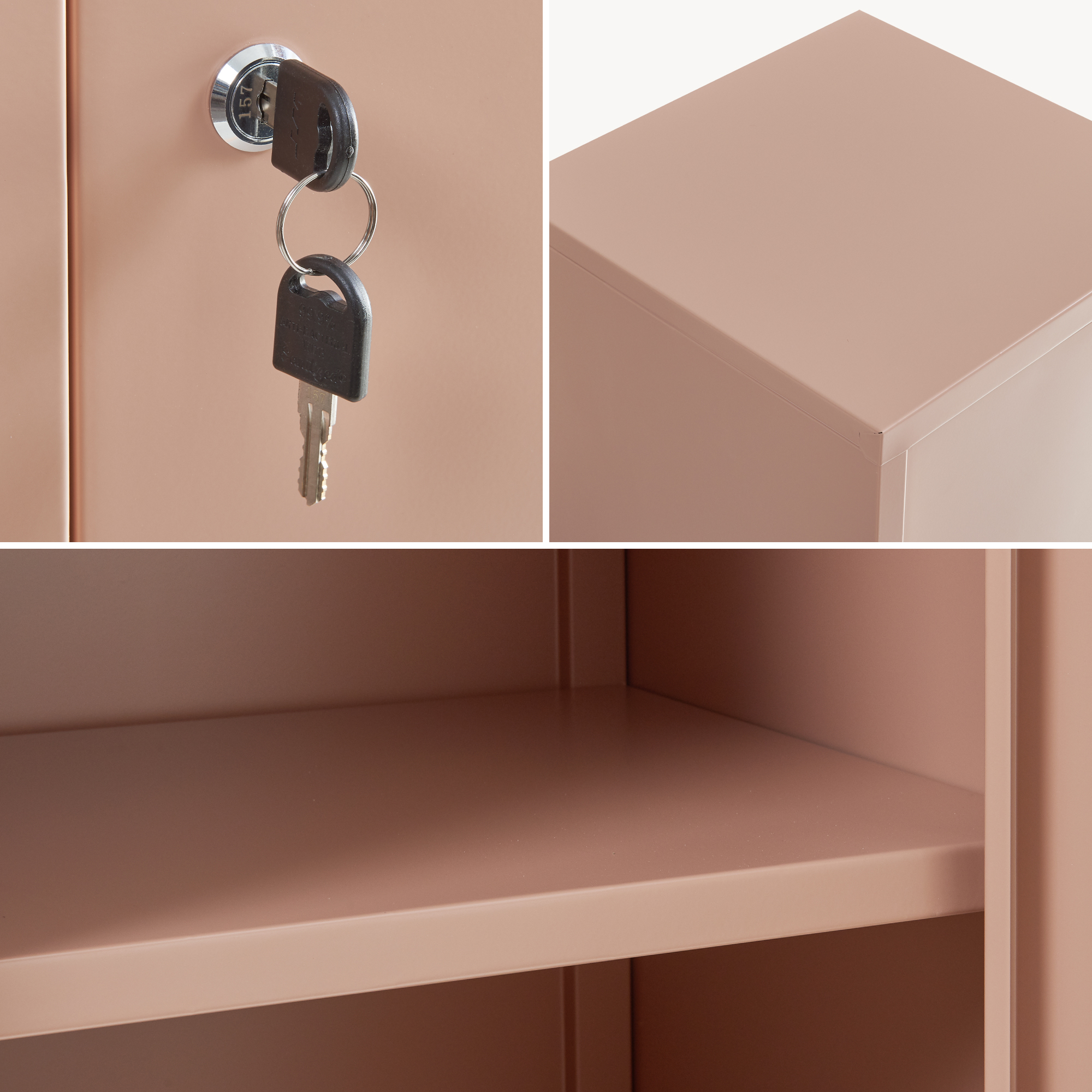 Prevăzut cu încuietoare și livrat cu 2 chei, dulapul oferă depozitare sigură pentru obiectele personale. Ușa este dotată cu închidere magnetică, mâner rezistent și fante de aerisire, pentru o utilizare comodă și o bună circulație a aerului în interior.