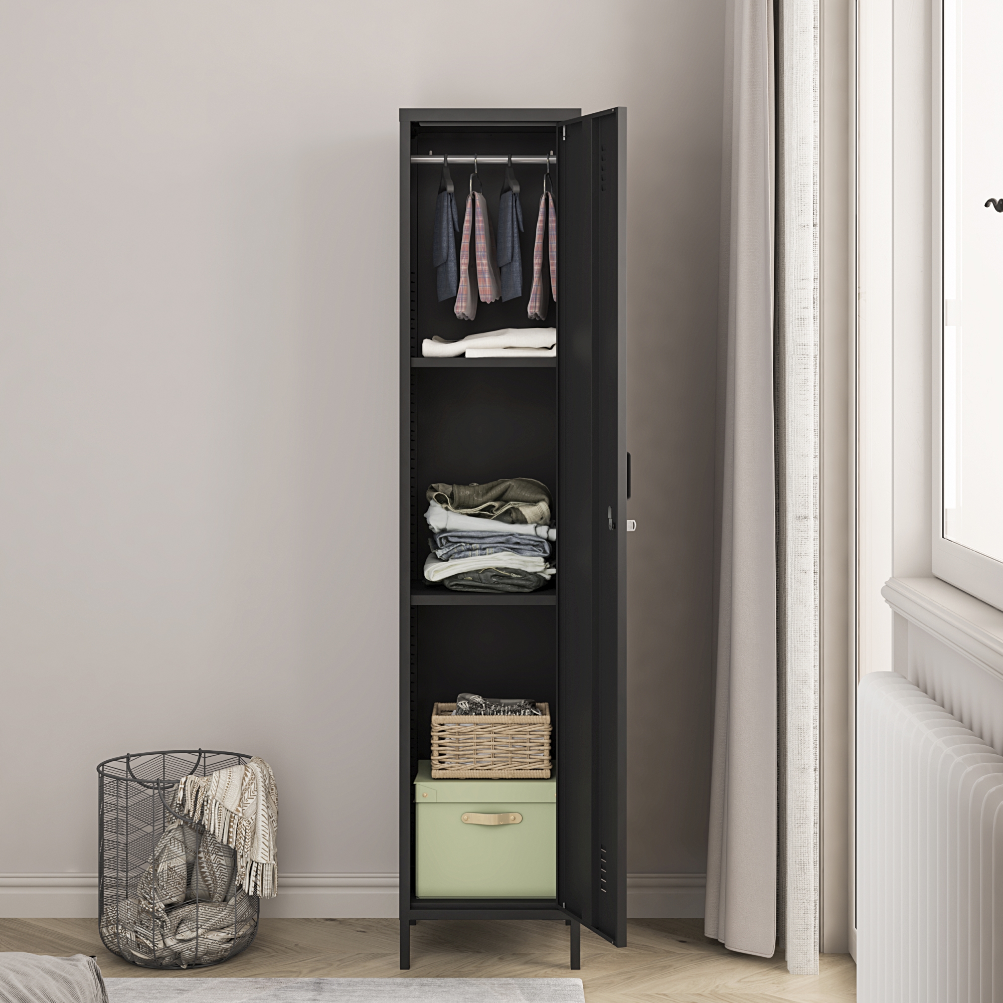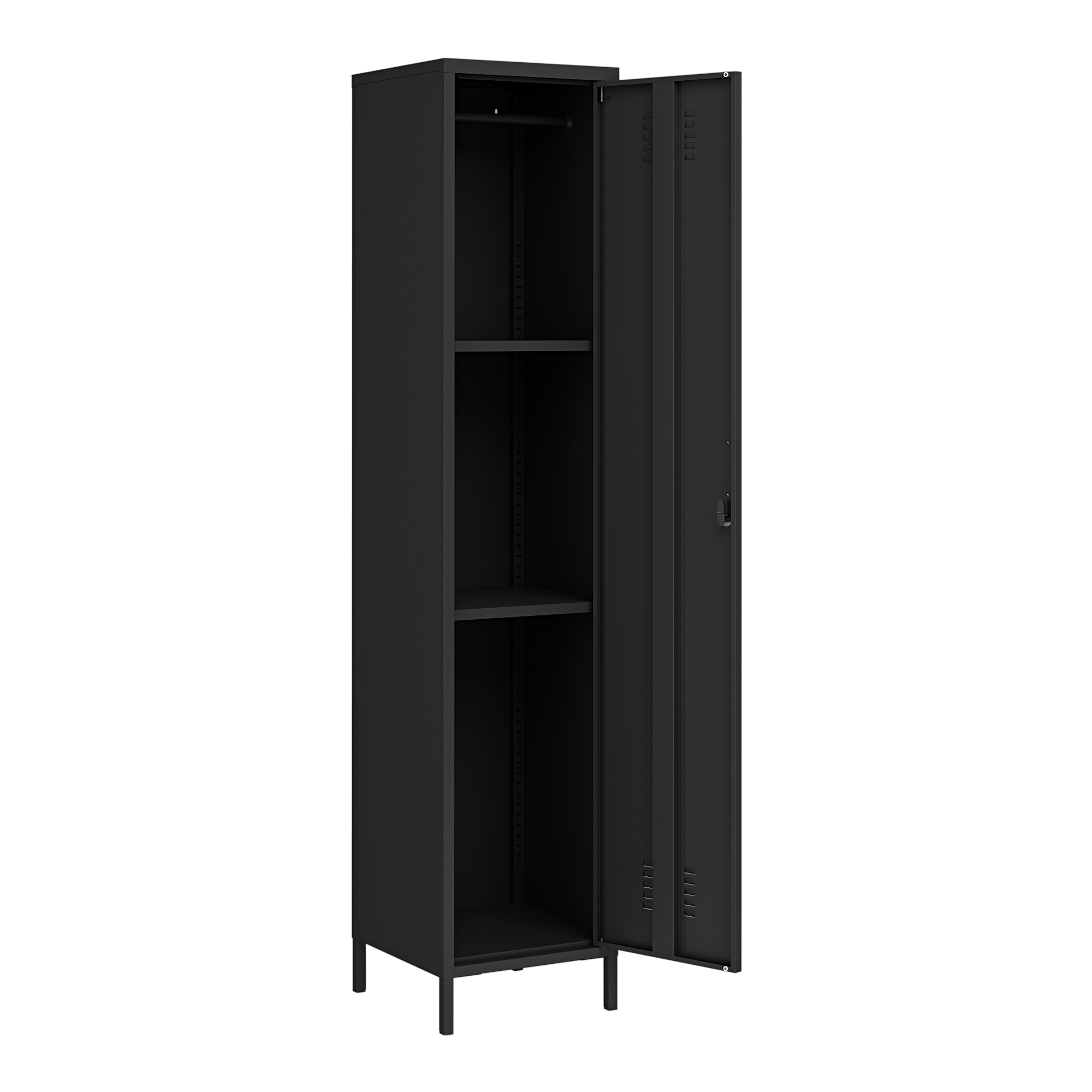 Dulapul metalic vestiar Seinajoki este o solutie practica si eleganta pentru organizarea hainelor si accesoriilor in locuinte, vestiare, ateliere sau birouri. Cu un design modern, finisaj negru mat si format compact, acest dulap metalic se integreaza usor in spatii diverse, oferind depozitare eficienta si un aspect ordonat.