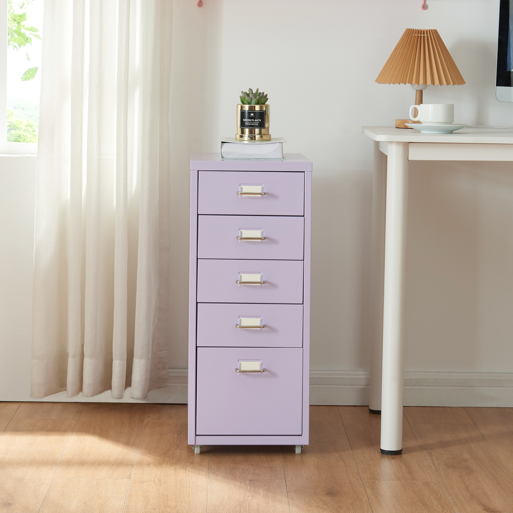 Dulap mobil de birou cu 5 sertare, lila, 69x28x41 cm, en.casa