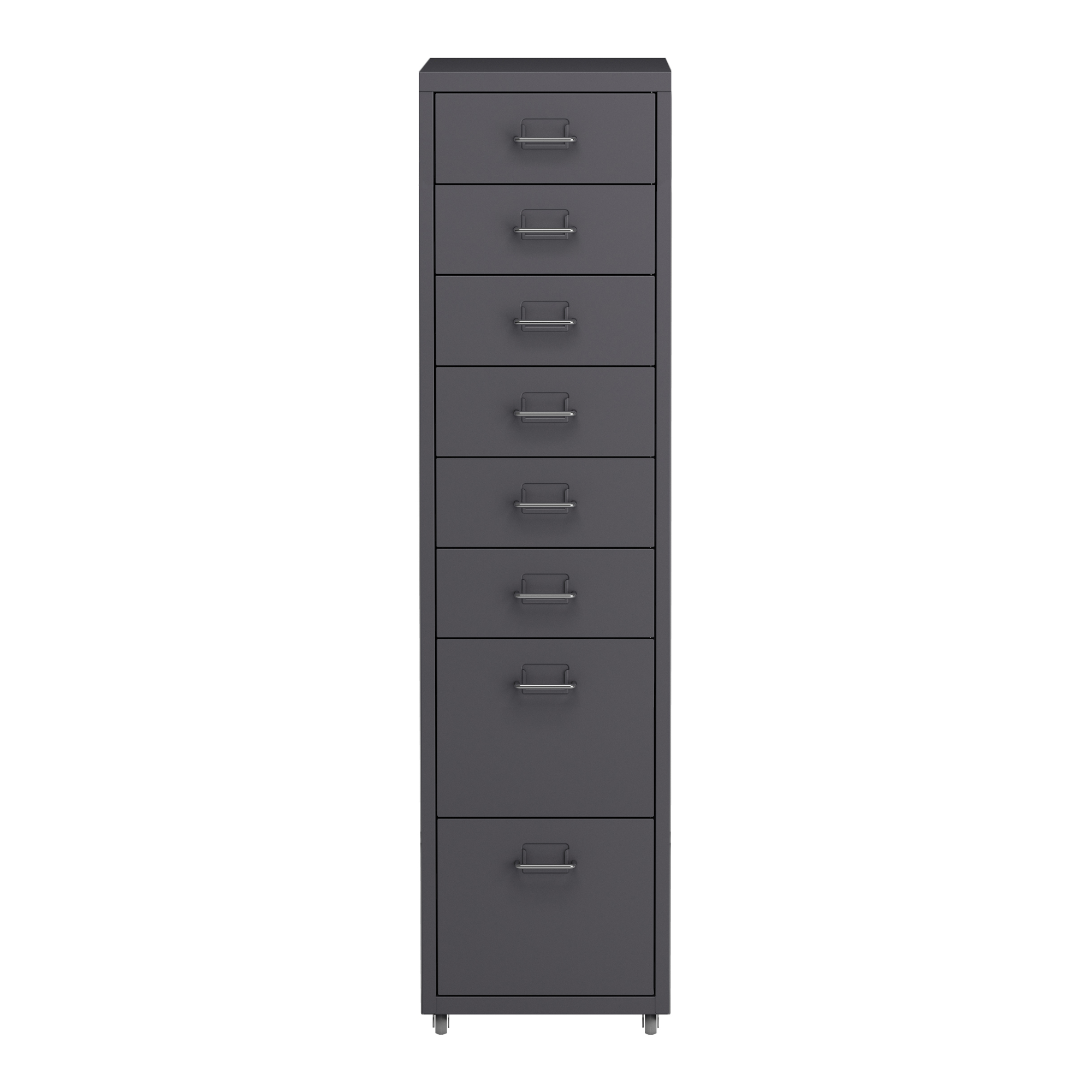 Dulap mobil de birou cu 8 sertare din otel, 109x28x41 cm, gri inchis