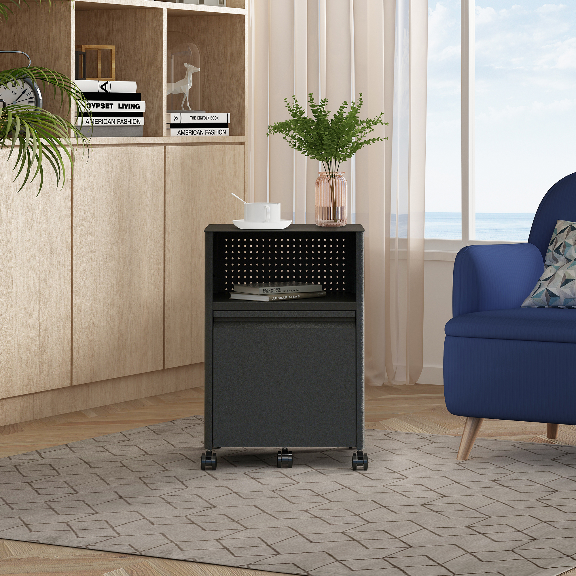 Poate fi folosit ca fișet mobil pentru documente, ca dulap lateral lângă birou sau ca piesă de depozitare suplimentară pentru accesorii de birou, cărți, cabluri, agende și alte obiecte esențiale. Designul sobru, în culoare neagră, se potrivește ușor în amenajări moderne sau industriale.
