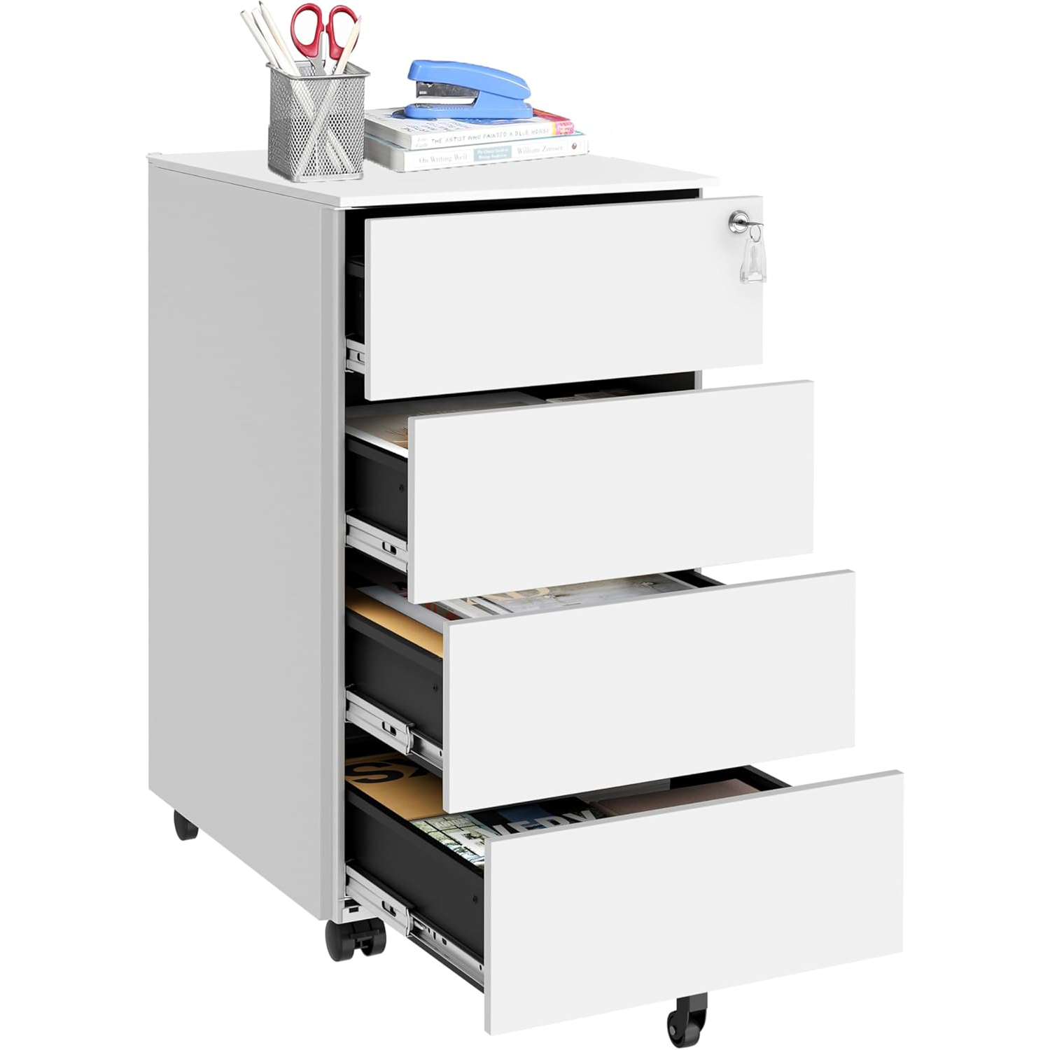 Dulap mobil pentru dosare SONGMICS, 4 sertare, incuietoare, alb