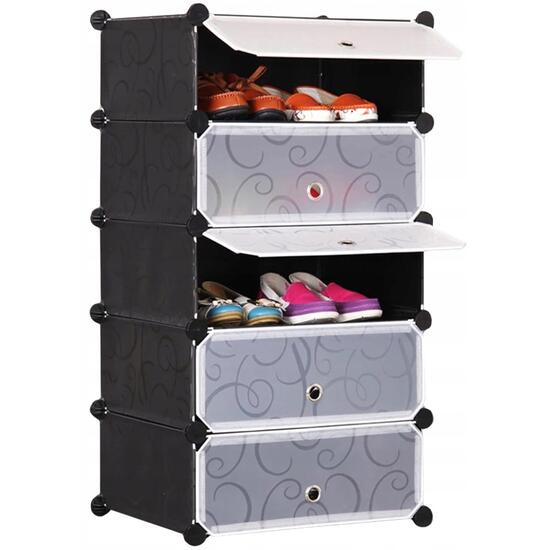 Dulap modular pentru depozitare incaltaminte, Mufart, plastic, 5 compartimente, 37x49x93 cm