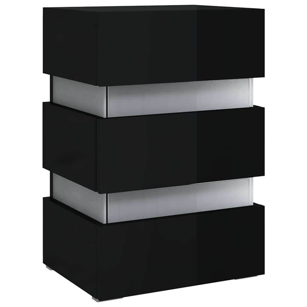 Dulap noptieră cu LED negru lucios 45x35x67cm lemn prelucrat GartenMobel Dekor