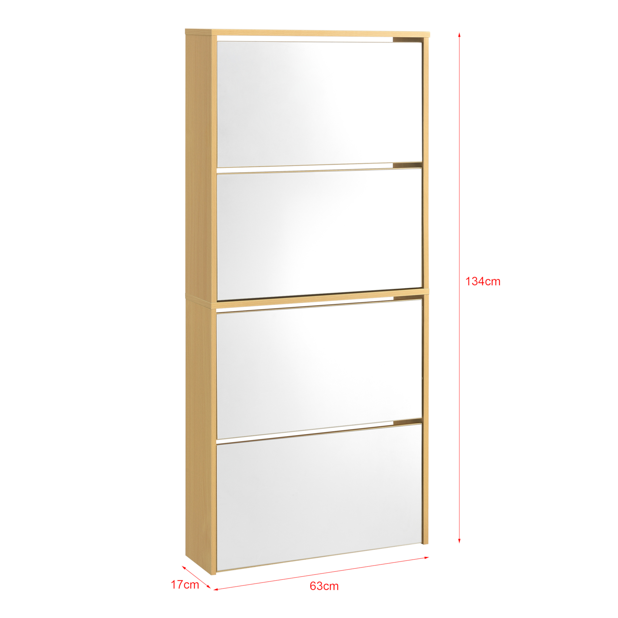 Dulap pantofi Vogar 1 cu oglinda si 4 spatii depozitare culoarea fagului [en.casa] HausGarden Leisure
