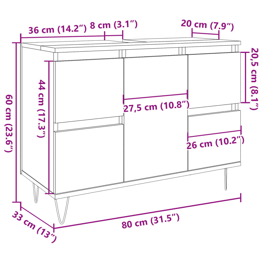 - Dimensiuni totale: 80 x 33 x 60 cm (l x ad. x î)