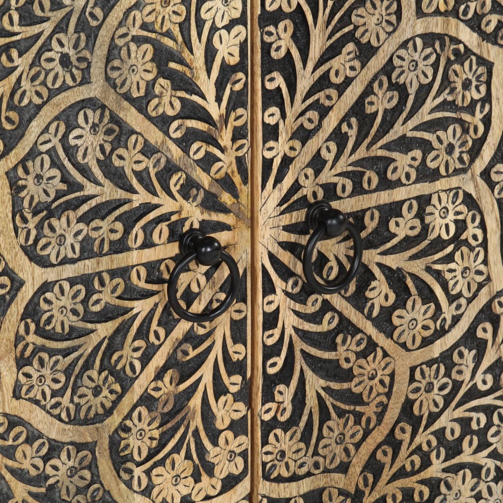 - Material: Lemn masiv de mango cu finisaj natural, lemn prelucrat, fier