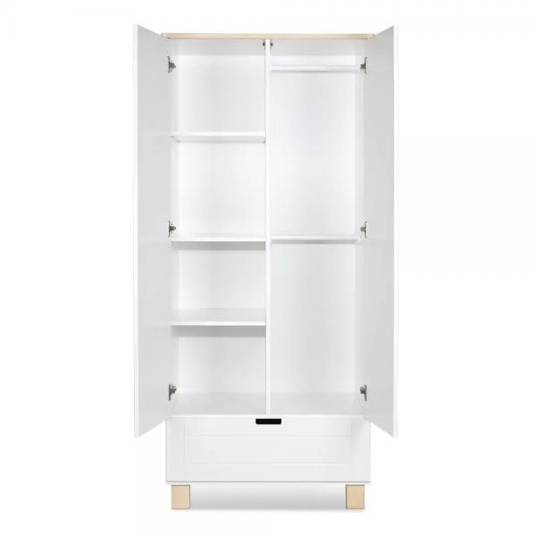 Interiorul este adaptat nevoilor celor mici, cu 3 rafturi, 2 bare pentru umerase si un sertar incapator, astfel incat organizarea hainelor sa fie simpla si eficienta. Sistemul push to open contribuie la un aspect curat si modern, fara manere voluminoase.