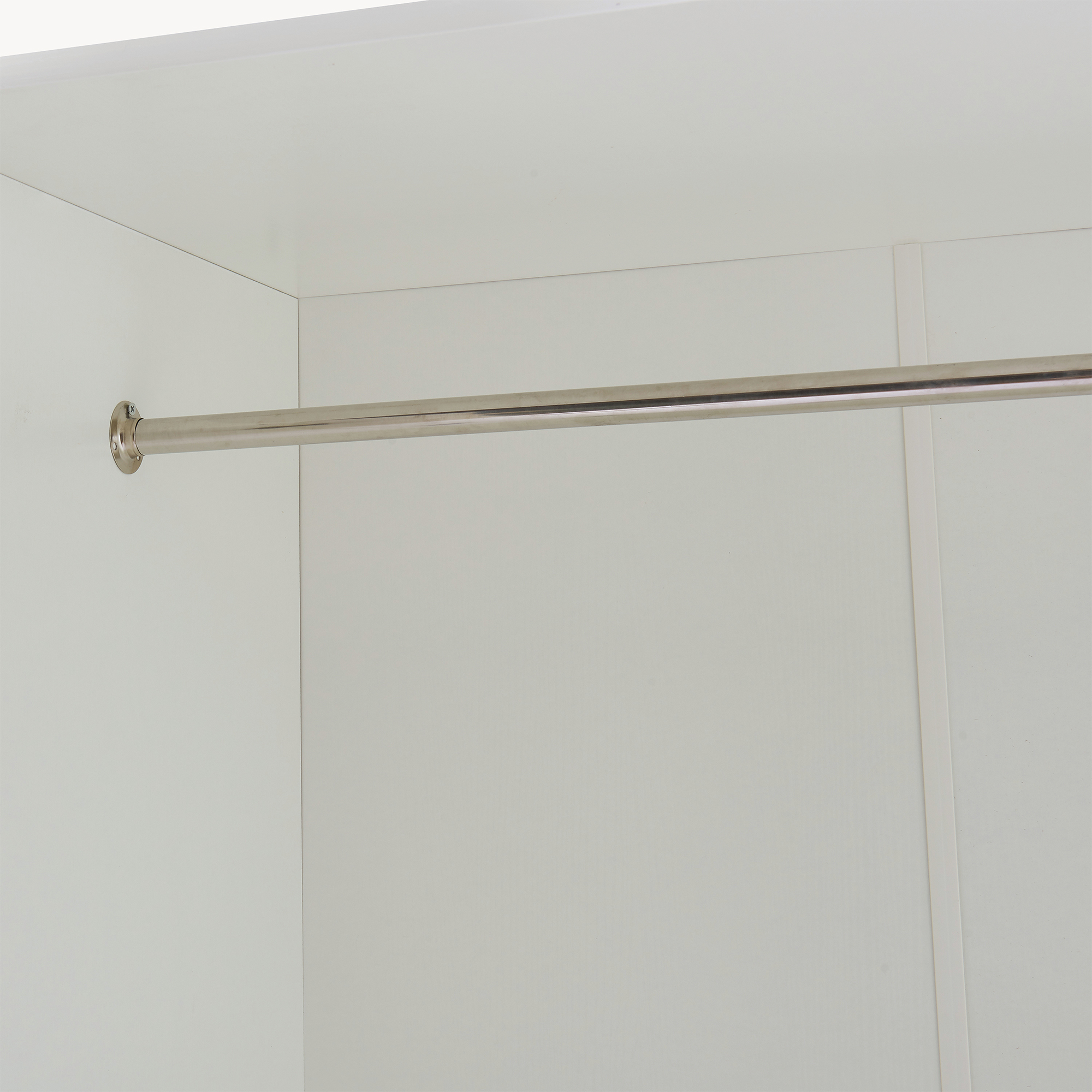 La interior, dulapul este prevăzut cu o bară pentru umerașe și o poliță suplimentară care împarte eficient spațiul în două zone distincte. Astfel, poți păstra cămăși, rochii sau jachete atârnate, iar pe raft poți organiza cutii, lenjerii sau alte obiecte utile de zi cu zi.