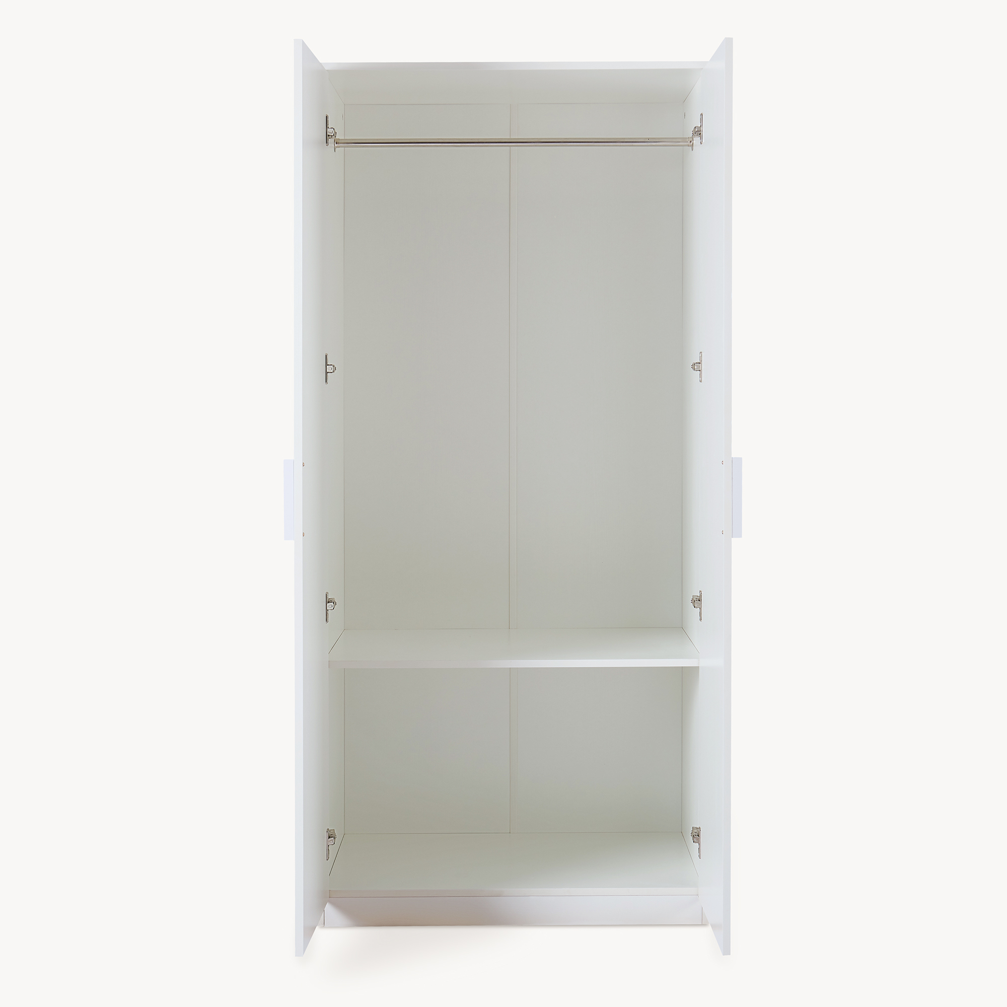 Dulap pentru haine alb, cu design modern și linii curate, ideal pentru un dormitor sau dressing amenajat practic și elegant. Acest dulap cu 2 uși oferă spațiu generos pentru haine, încălțăminte și accesorii, integrându-se ușor în decoruri contemporane, minimaliste sau scandinave.