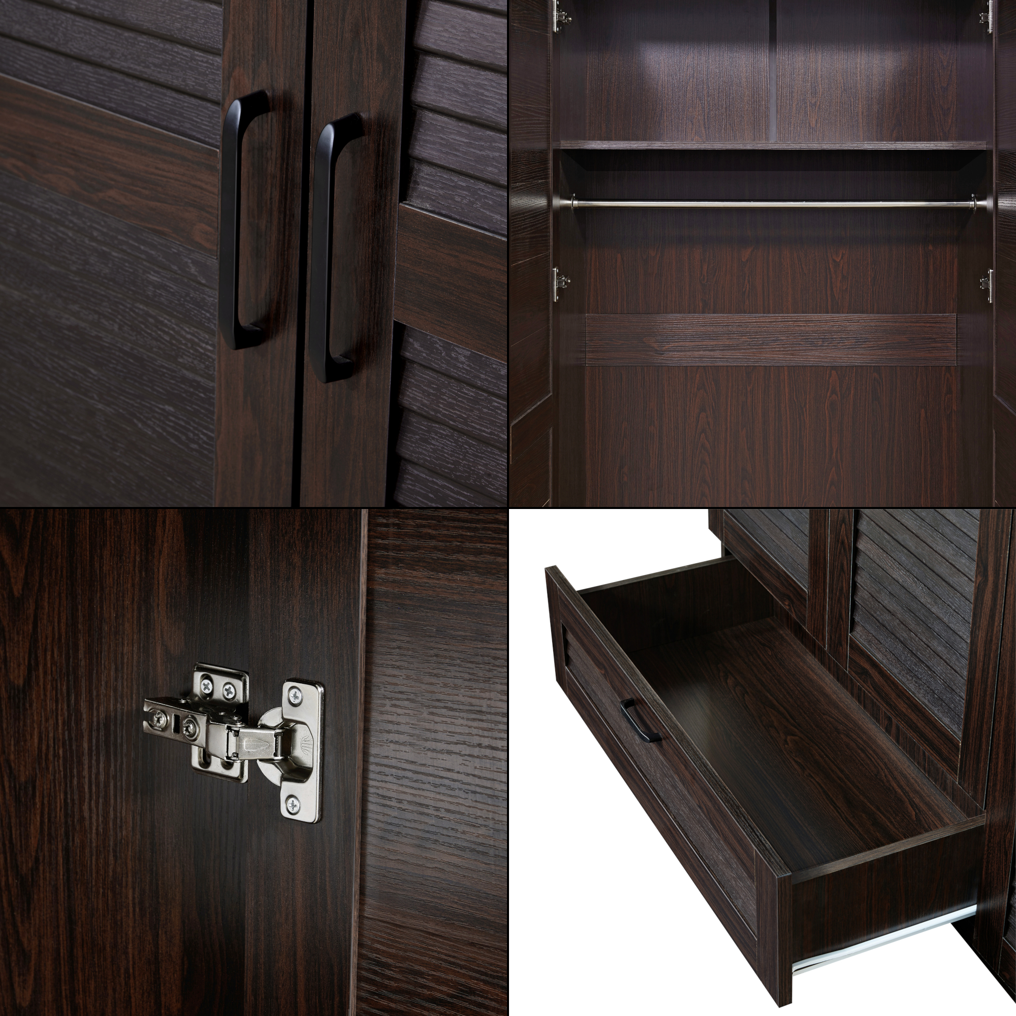 Dulap pentru haine Finning este alegerea ideală pentru un dormitor sau dressing bine organizat, cu un design modern și elegant. Finisajul în nuanță de nuc închis adaugă un plus de rafinament, iar compartimentarea practică te ajută să păstrezi la îndemână hainele, lenjeriile și accesoriile de zi cu zi.