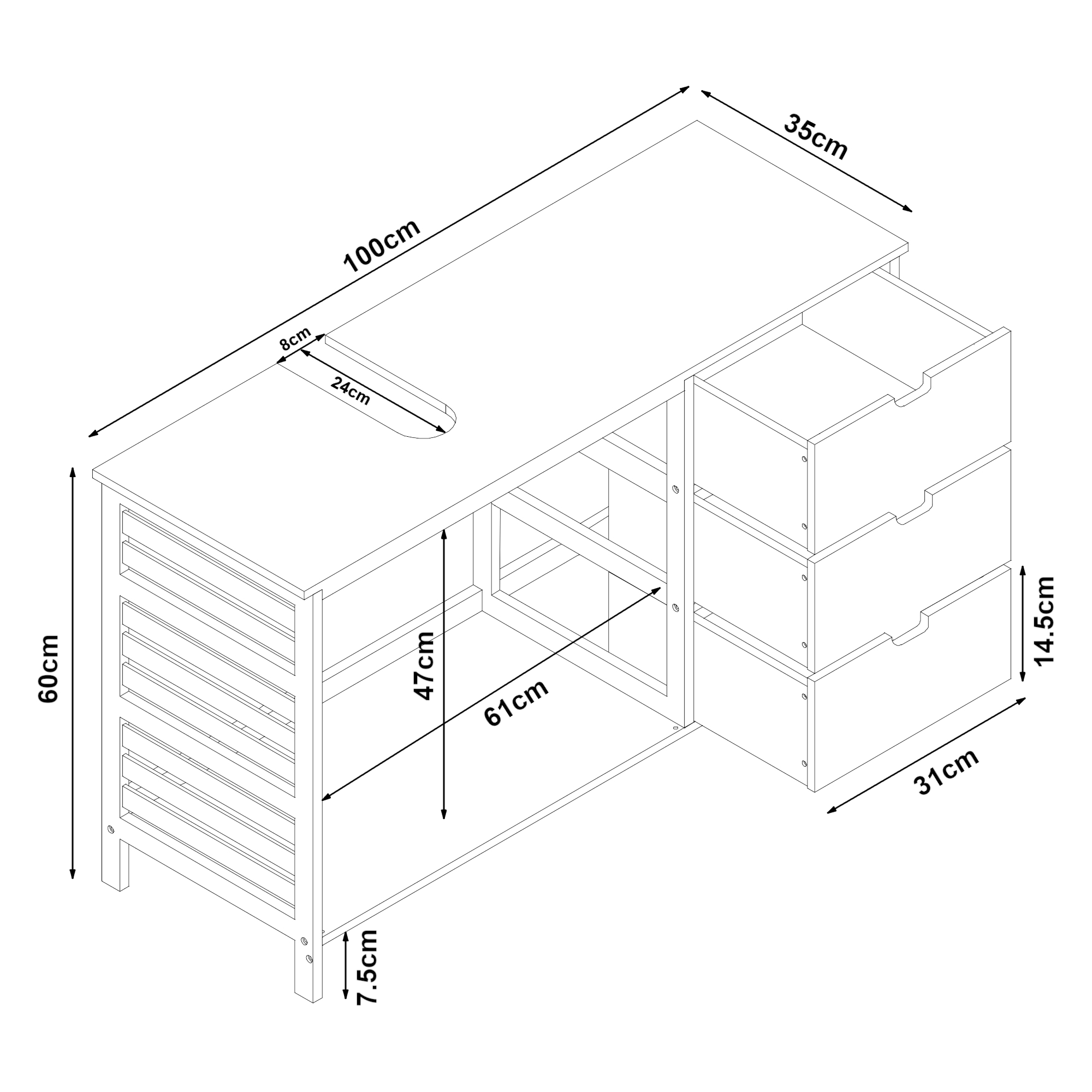 - Dimensiuni totale (IxLxA): 60 x 100 x 35 cm