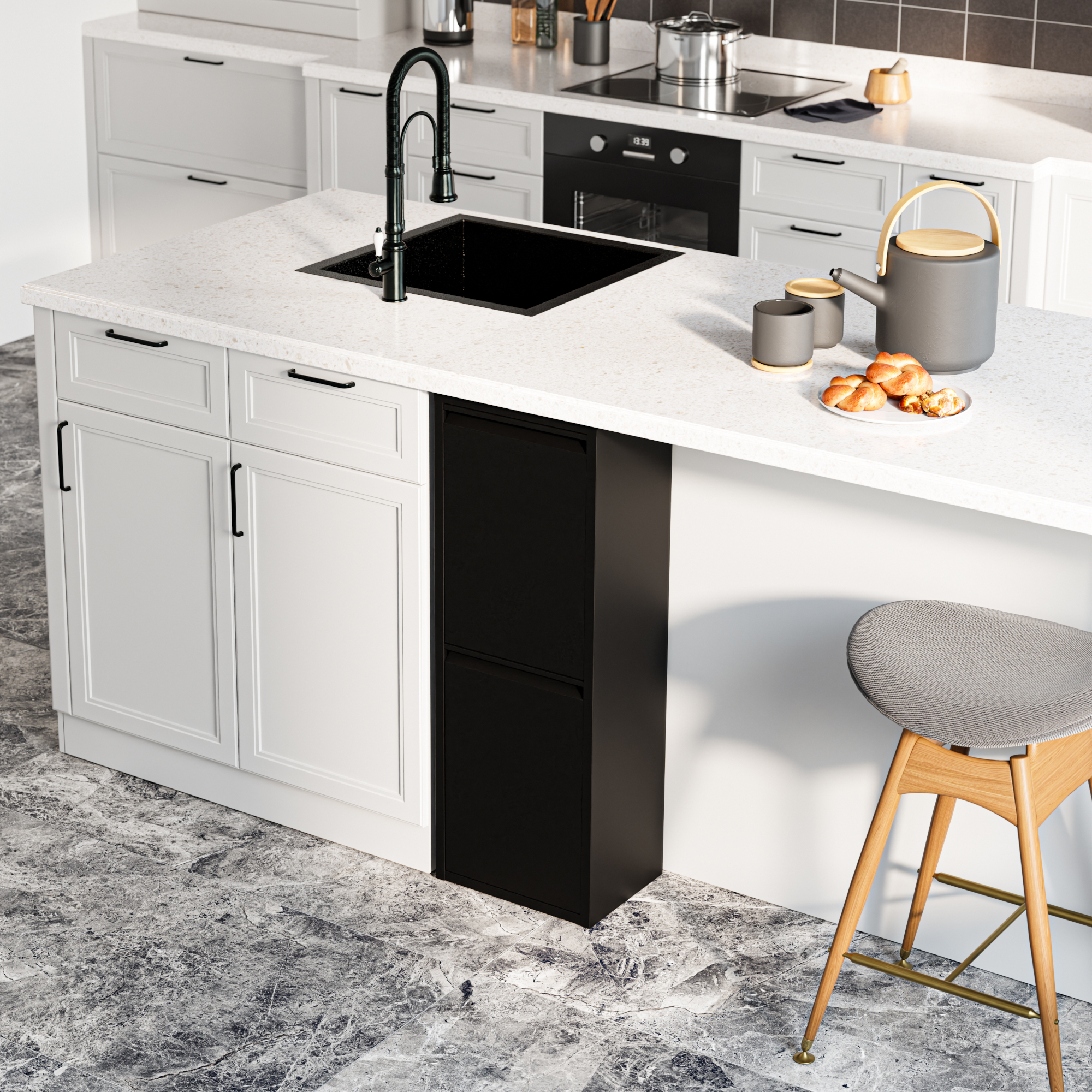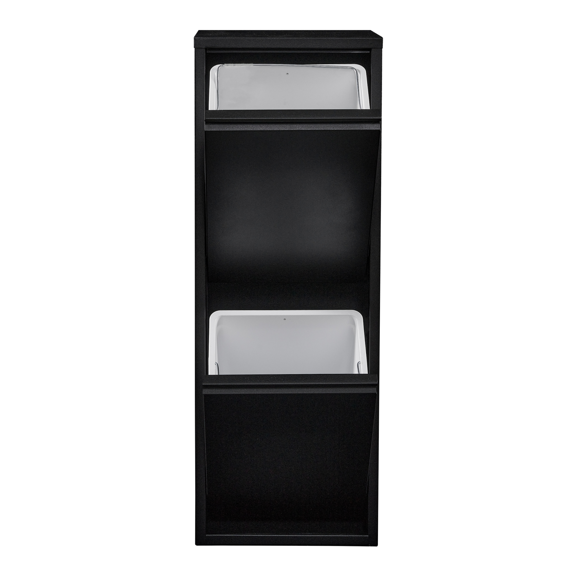 Acest dulap reciclare este ideal pentru sortarea deseurilor menajere, reciclabile sau compostabile in locuinte, apartamente si bucatarii cu spatiu limitat. Compartimentele rabatabile se deschid separat, pentru acces facil si organizare mai buna.