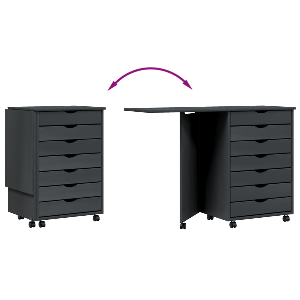 Dulap rulant cu birou MOSS gri lemn masiv de pin GartenMobel Dekor
