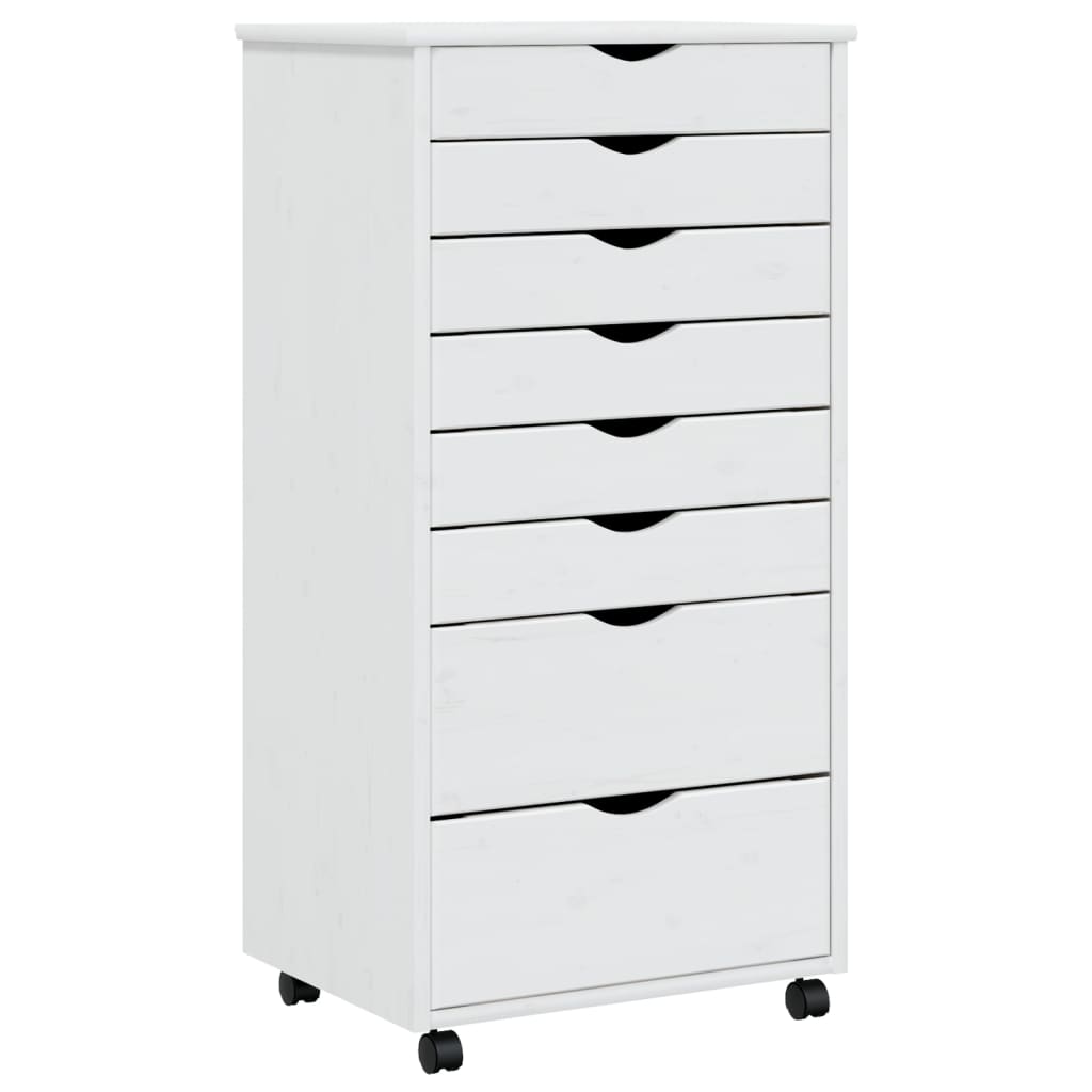 Dulap rulant cu sertare MOSS, alb, lemn masiv de pin GartenMobel Dekor