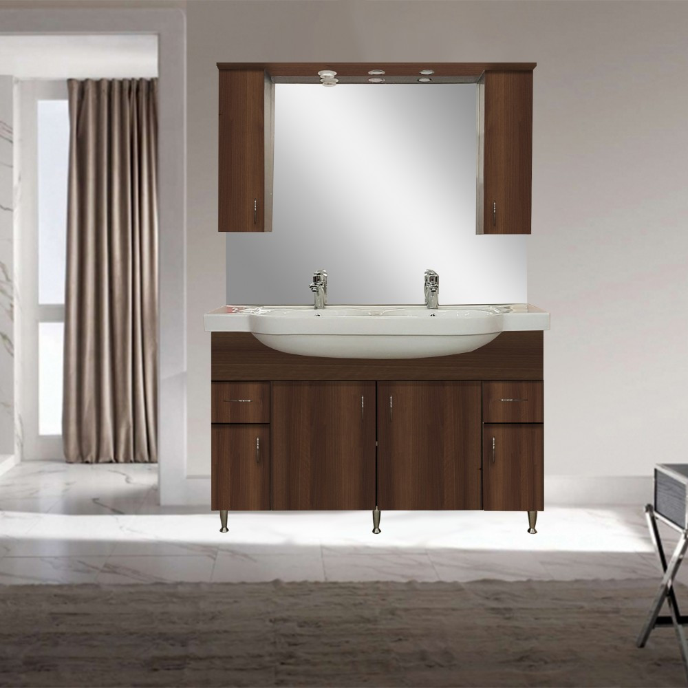 - Stil clasic în nuanță de nuc, potrivit pentru multe tipuri de băi