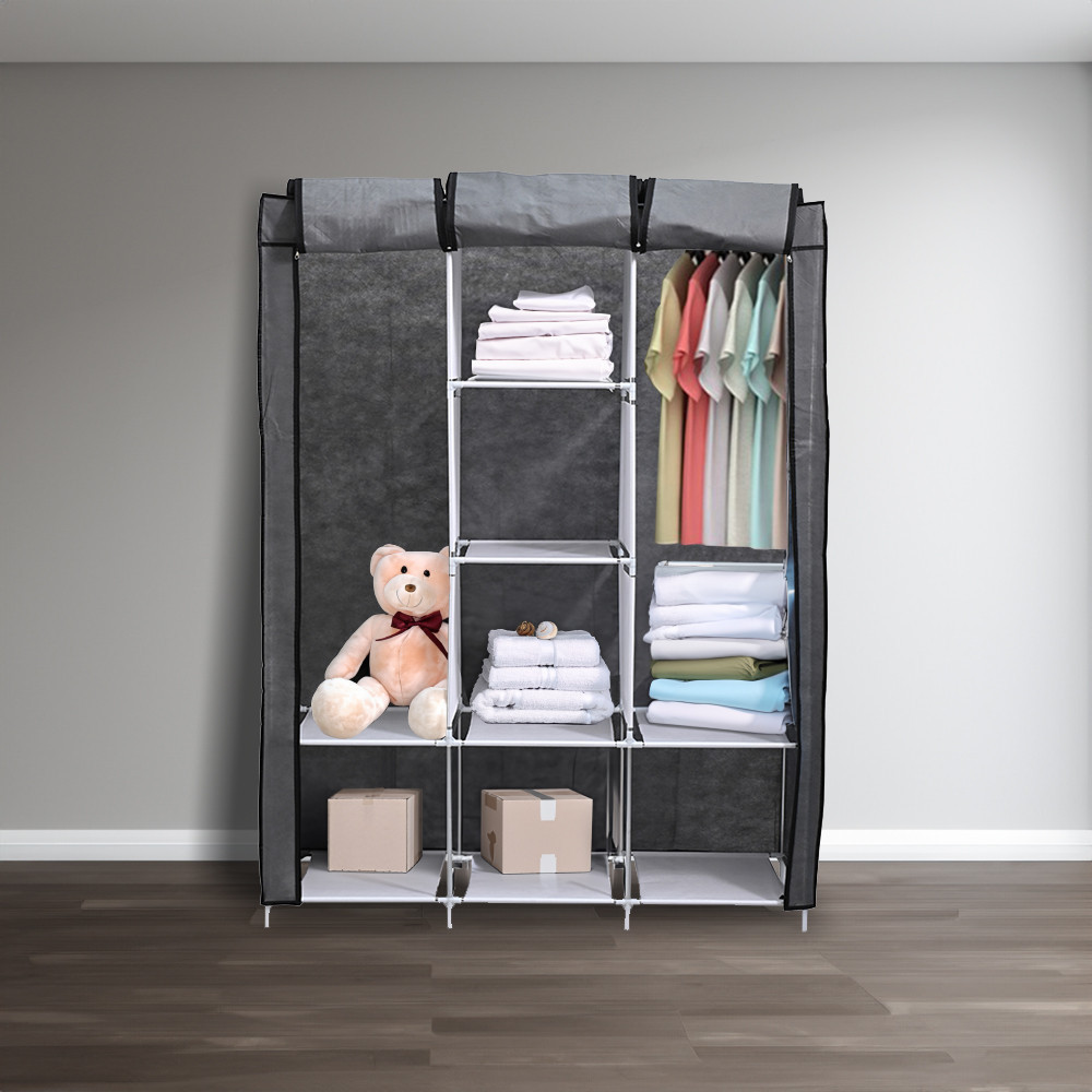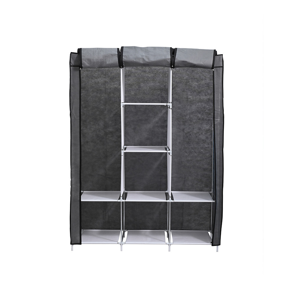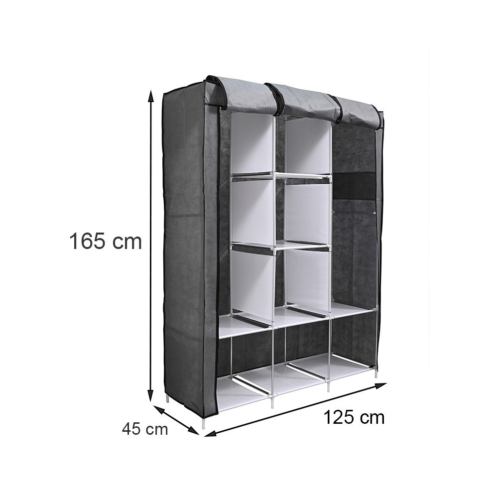 Dulap textil Leziter LGSZ-04 gri cu rafturi si bara umerase, 125x45x165 cm