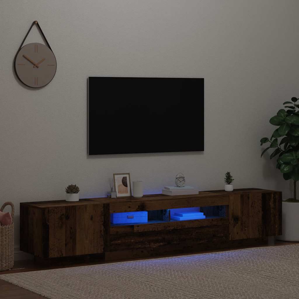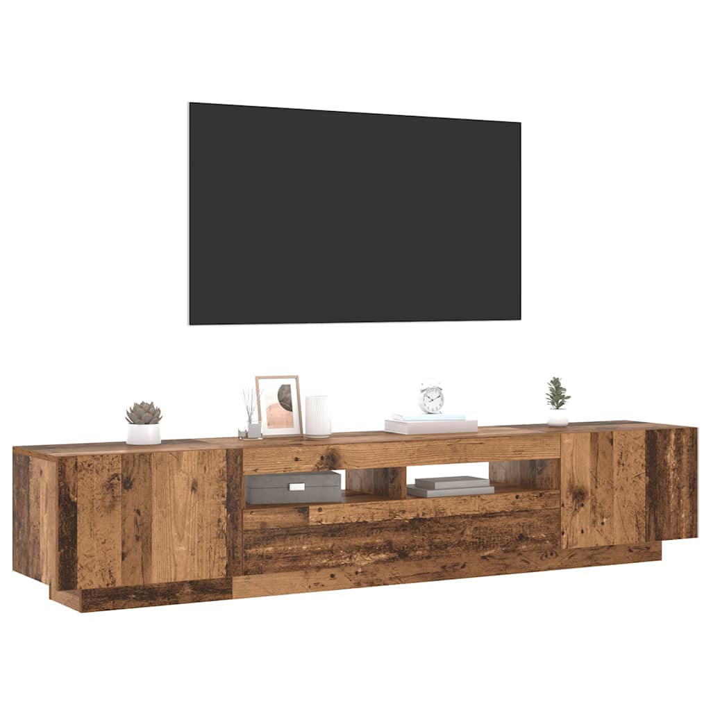 Dulap TV cu lumini LED lemn vechi 200x35x40 cm lemn prelucrat GartenMobel Dekor