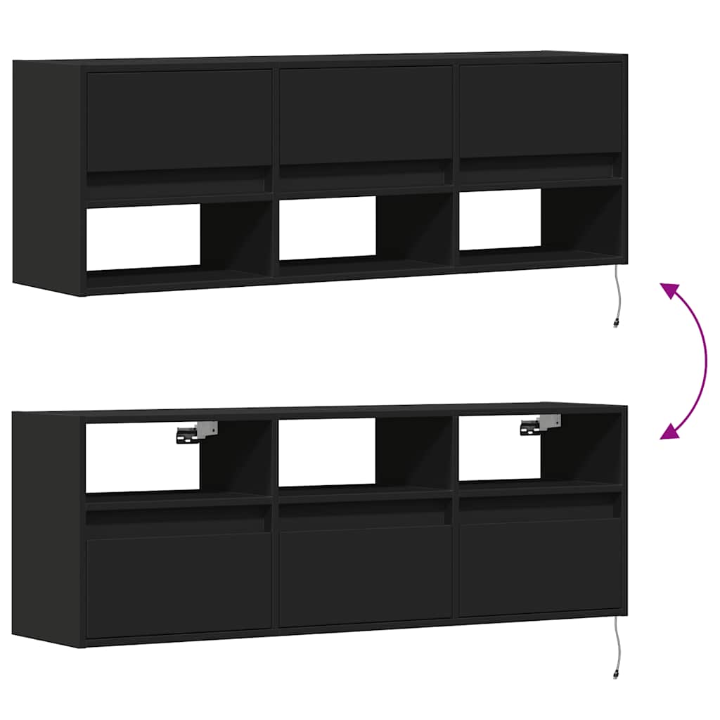 Dulap TV de perete cu lumini LED negru 130x31x45 cm GartenMobel Dekor