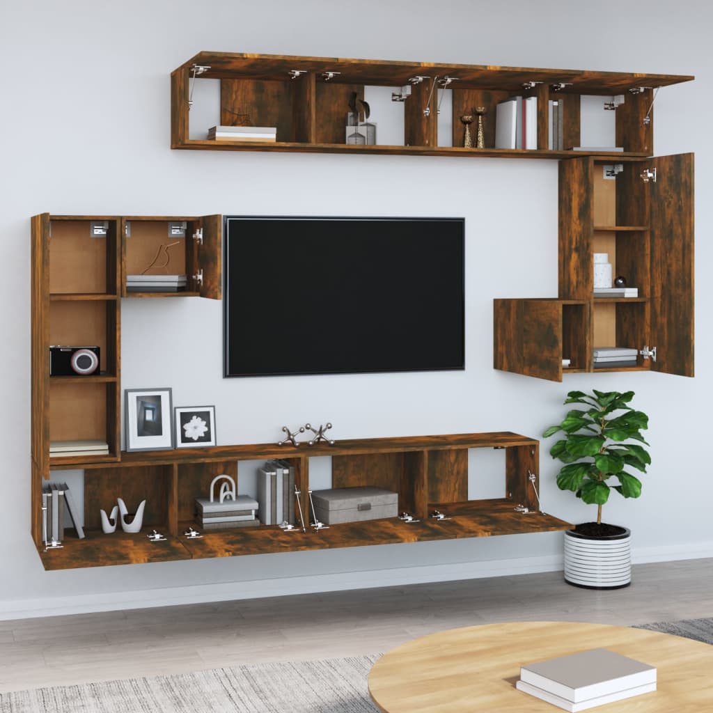 Dulap TV montat pe perete, stejar fumuriu, lemn prelucrat GartenMobel Dekor