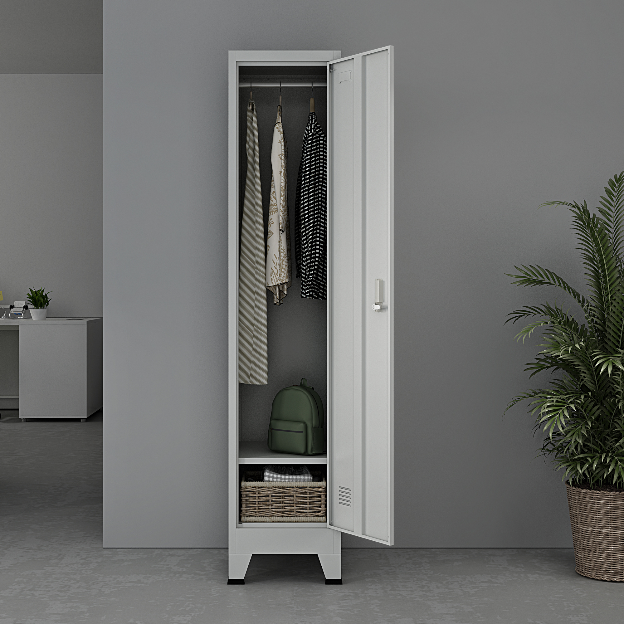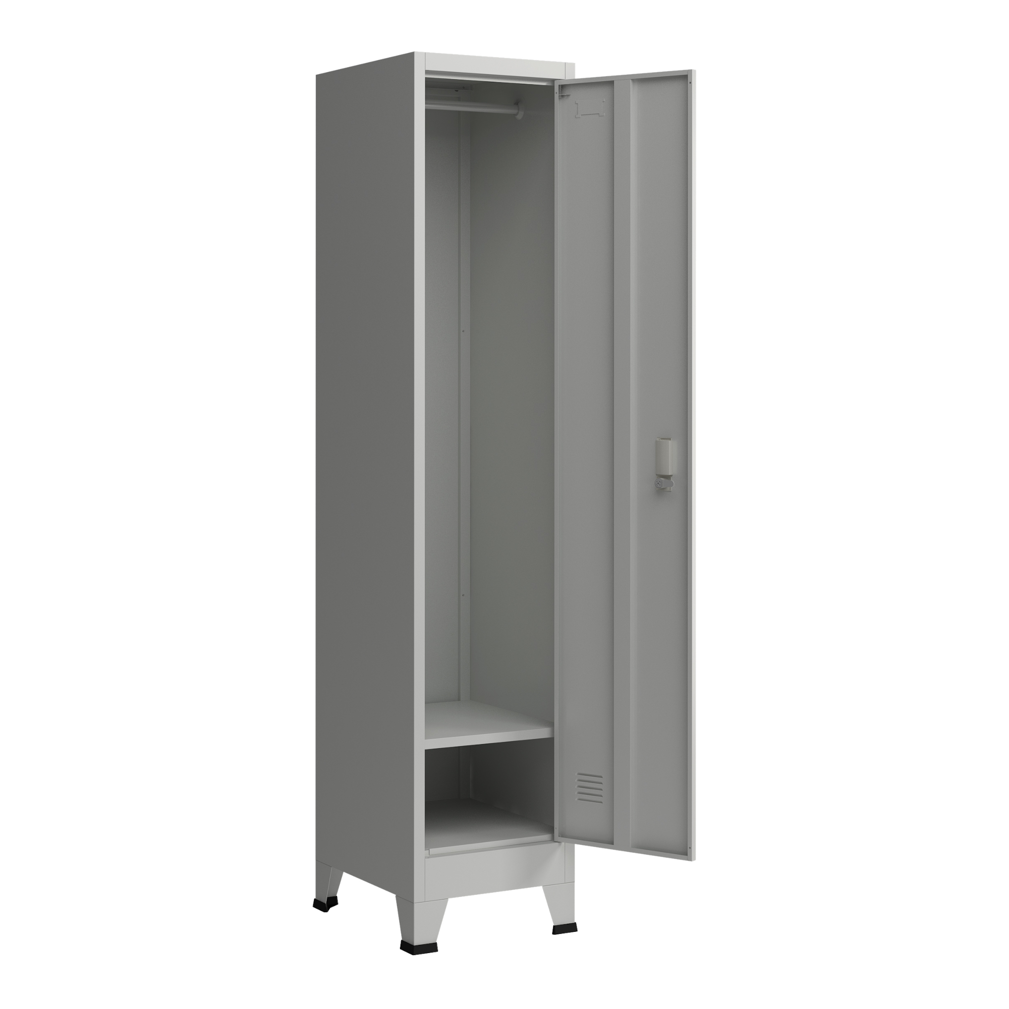 Dulapul vestiar metalic Joroinen este soluția practică și sigură pentru depozitarea obiectelor personale în spații precum birouri, vestiare, școli sau firme. Cu un design simplu și modern, acest dulap metalic cu 1 ușă se integrează ușor în decor și oferă organizare eficientă pentru haine, accesorii și alte bunuri.