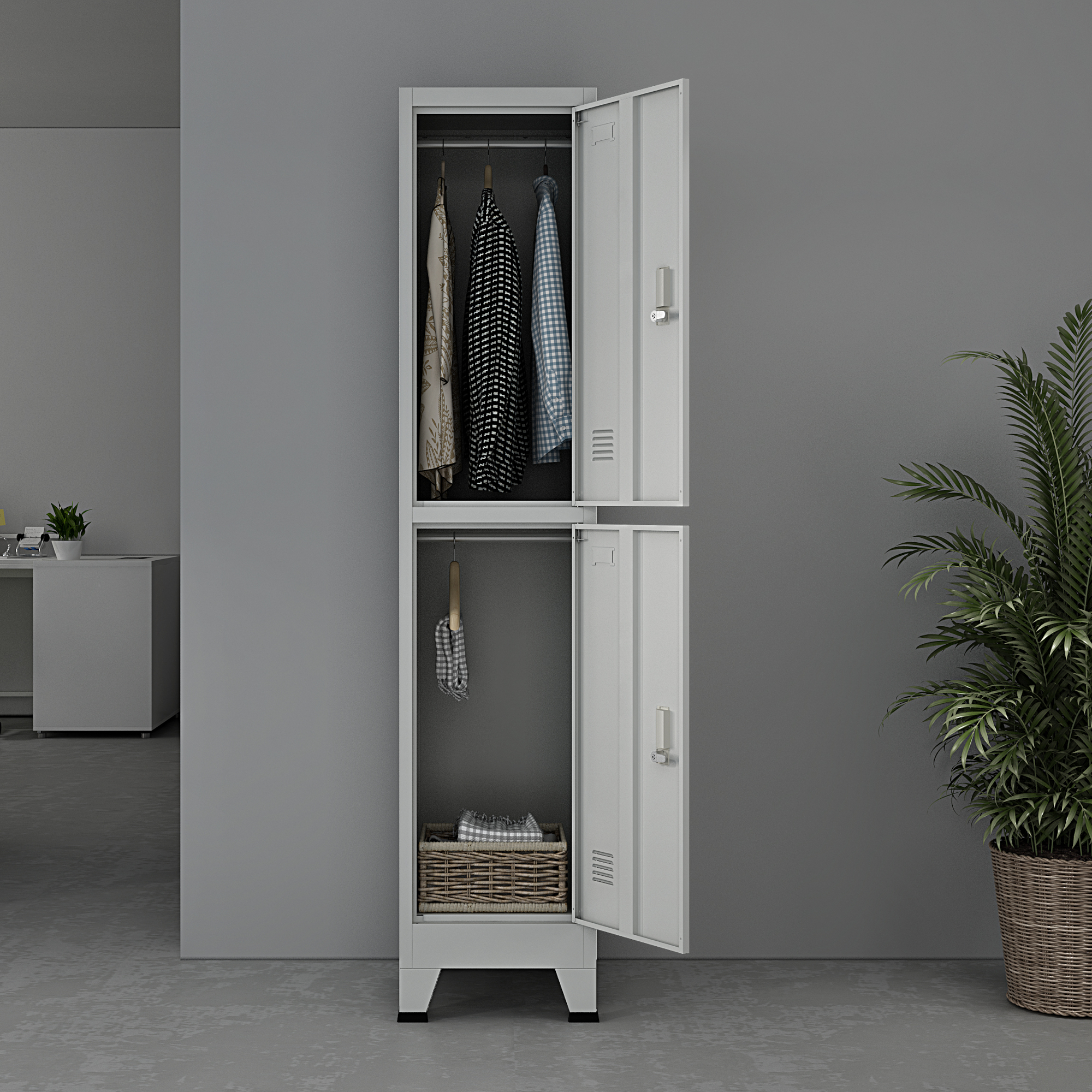 Fiecare compartiment este prevazut cu usa separata, incuiabila, pentru protectia lucrurilor personale. In plus, fantele de ventilatie contribuie la o buna circulatie a aerului, iar suporturile pentru etichete ajuta la identificarea rapida a fiecarui spatiu. In interior, fiecare compartiment include o bara practica pentru haine, utila pentru organizarea eficienta a articolelor vestimentare.