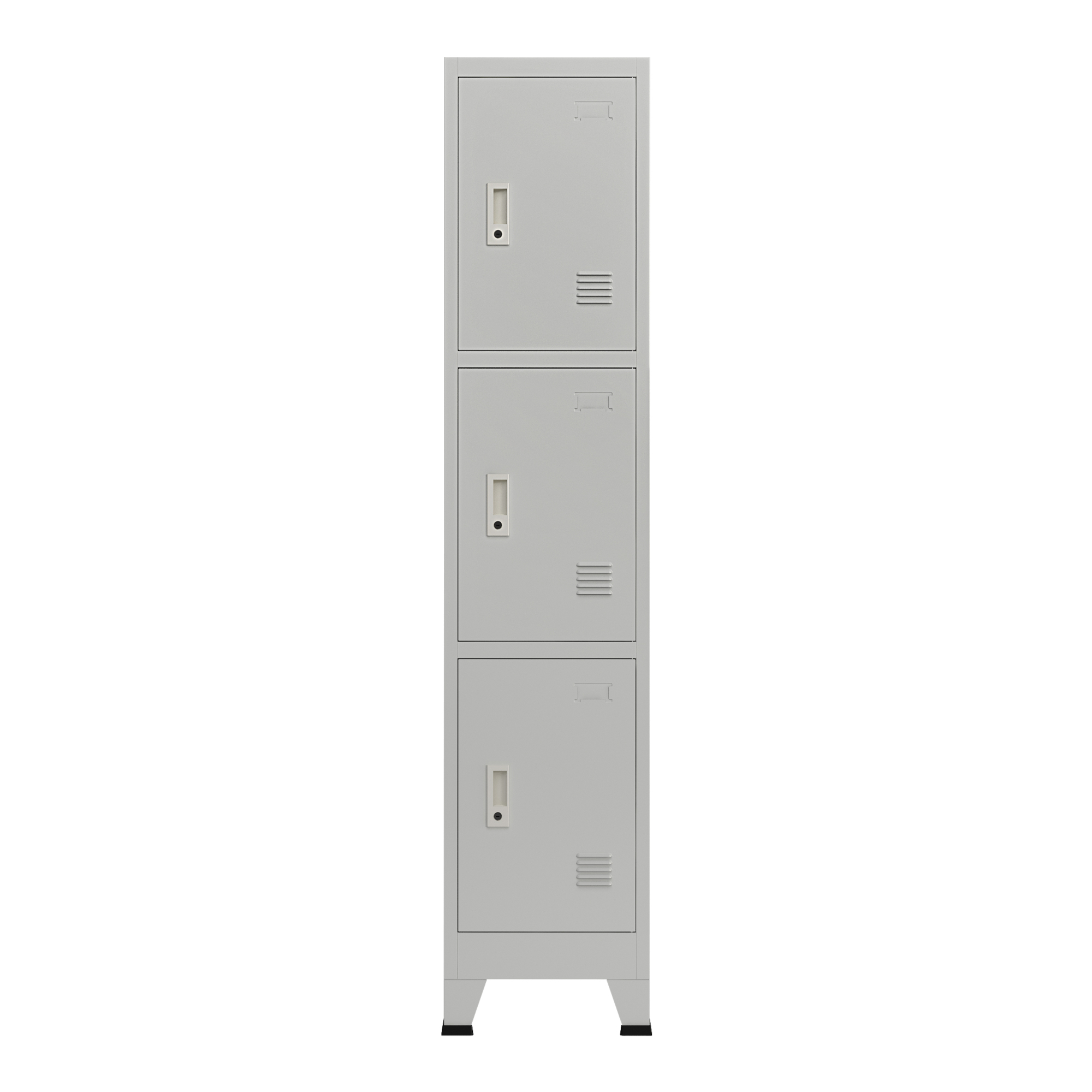 Dulap vestiar metalic Joroinen cu 3 uși încuiabile, gri, 180x38x45 cm