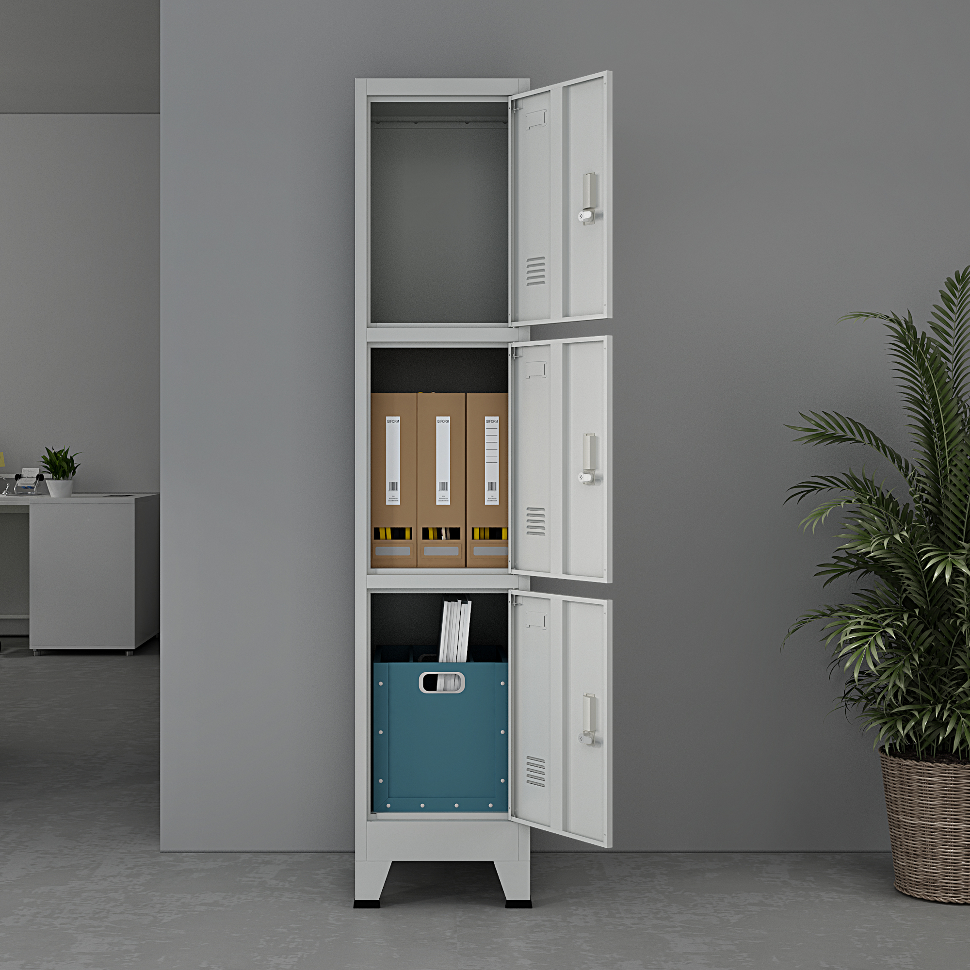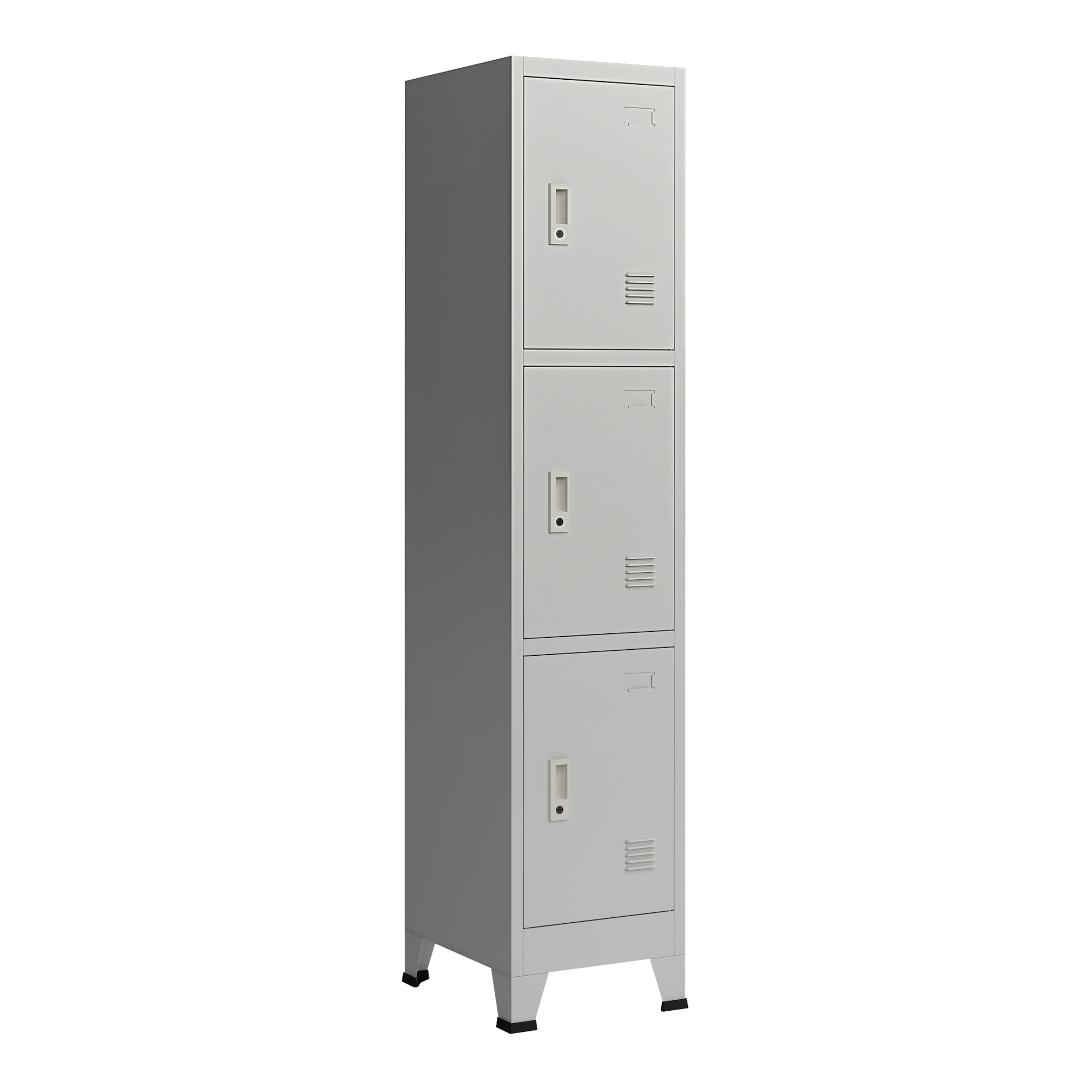 Realizat din oțel vopsit în câmp electrostatic, acest dulap metalic cu 3 uși este rezistent, ușor de întreținut și potrivit pentru utilizare zilnică. Fiecare ușă este prevăzută cu sistem de închidere, fante de aerisire și suport pentru etichetă, astfel încât organizarea să fie simplă, eficientă și clară.