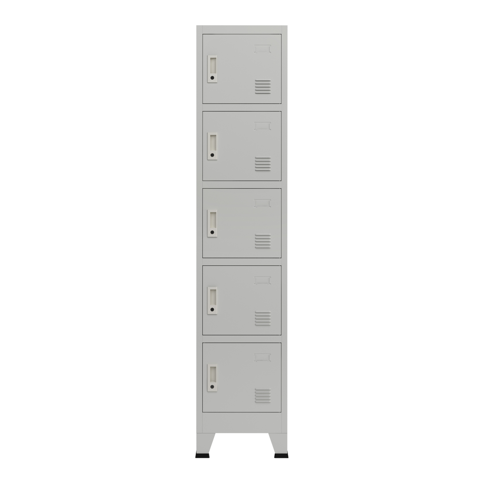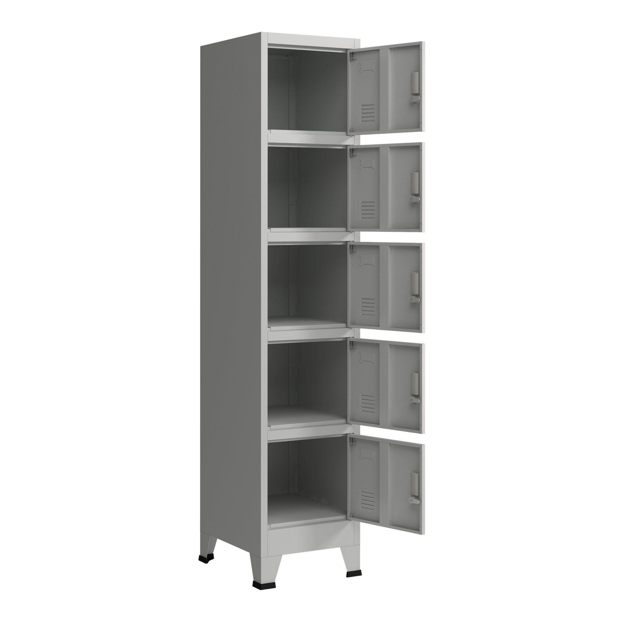 Dulap vestiar metalic Joroinen cu 5 uși, gri, 180x38x45 cm