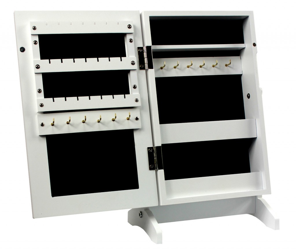 - Compartimentare: carlige si rafturi pentru bijuterii