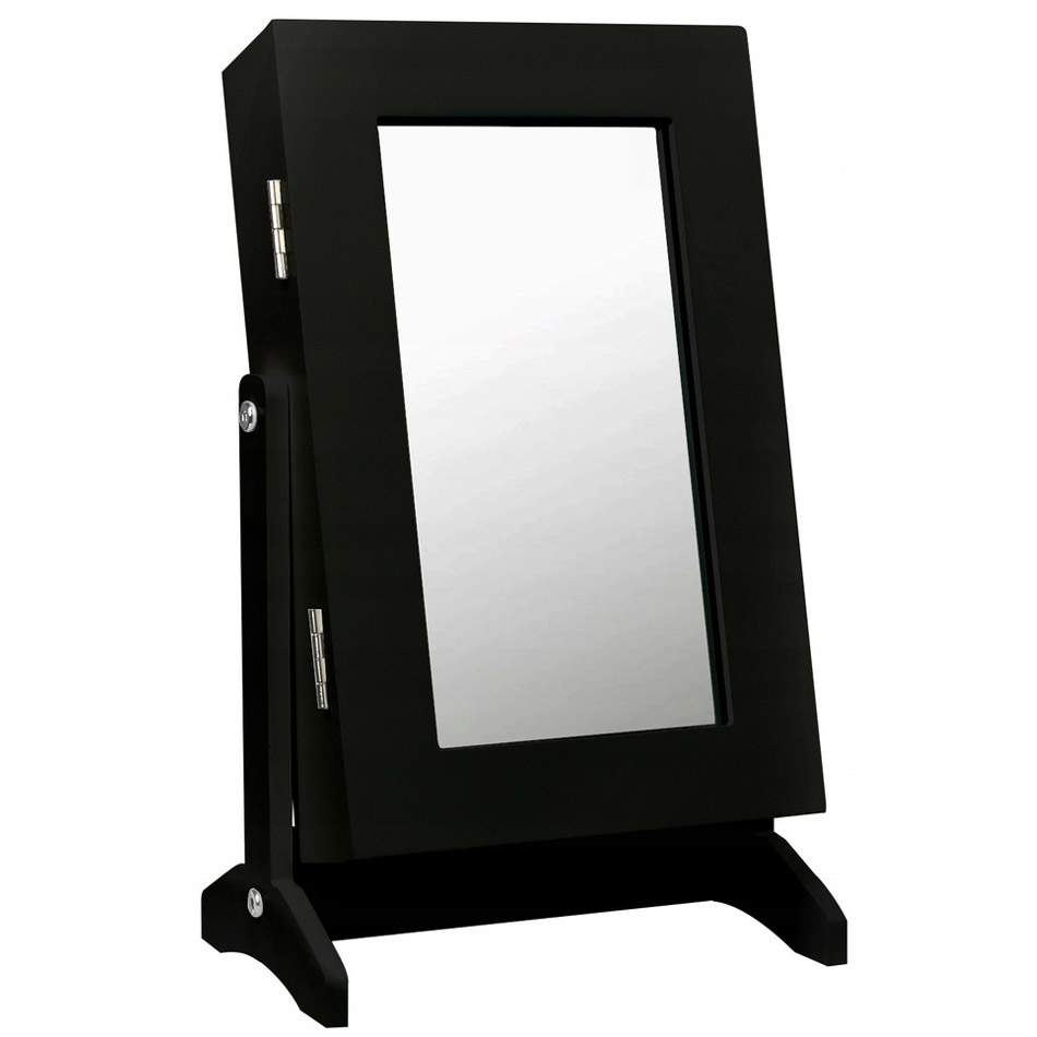 Pastreaza-ti accesoriile in ordine cu acest dulapior pentru bijuterii cu oglinda, o alegere practica si eleganta pentru dormitor sau masa de toaleta. Realizat din MDF in finisaj negru, cu aspect modern-victorian, produsul imbina utilitatea unei oglinzi cu spatiul necesar pentru depozitarea in siguranta a colierelor, inelelor, bratarilor si ceasurilor.