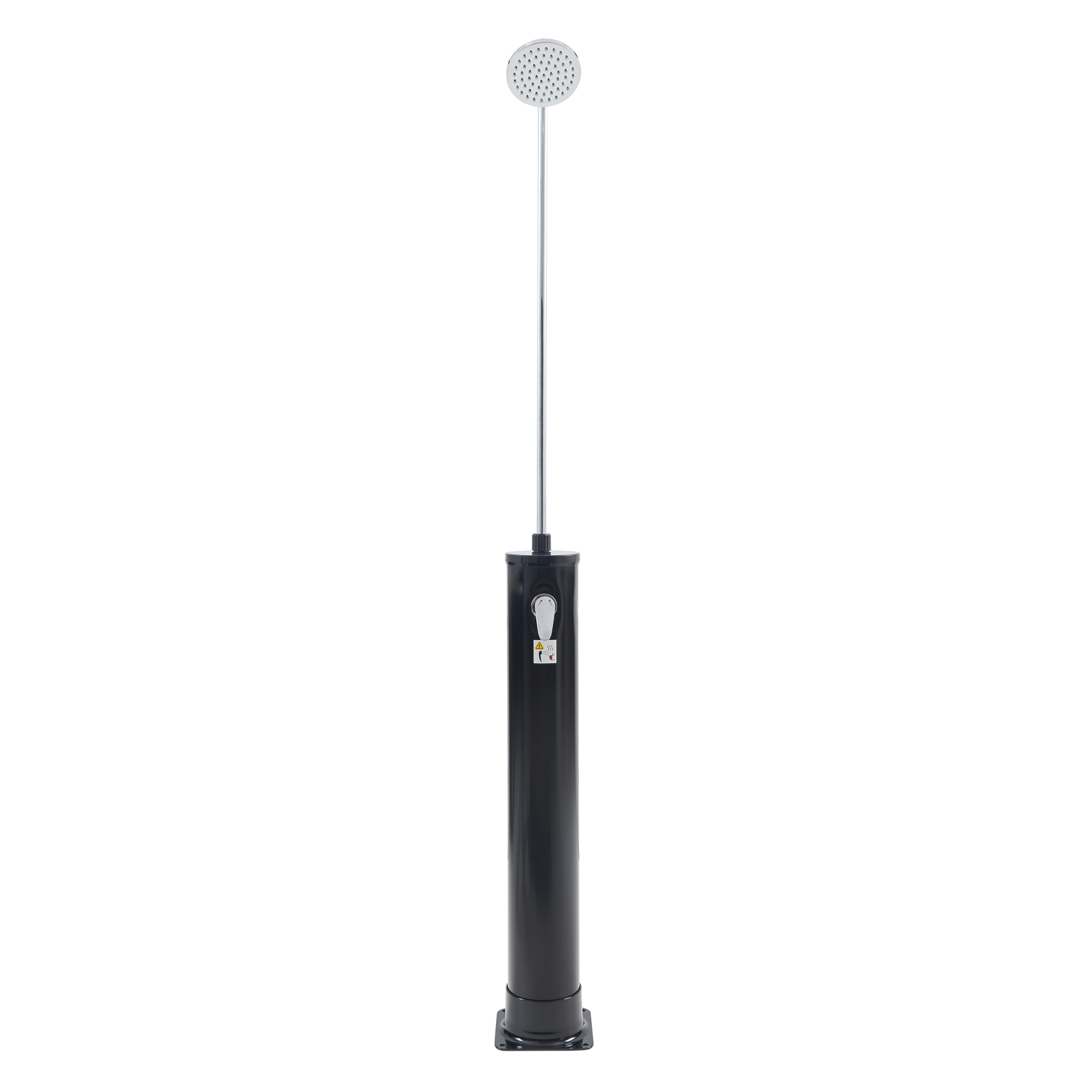 Cu un rezervor de 18 litri și o înălțime totală de 215 cm, acest duș solar exterior este perfect pentru clătire înainte sau după înot, după plajă ori pentru utilizare în diverse activități outdoor. Bateria cu monocomandă permite reglarea ușoară a temperaturii, prin amestecarea apei calde din rezervor cu apa rece din furtun.