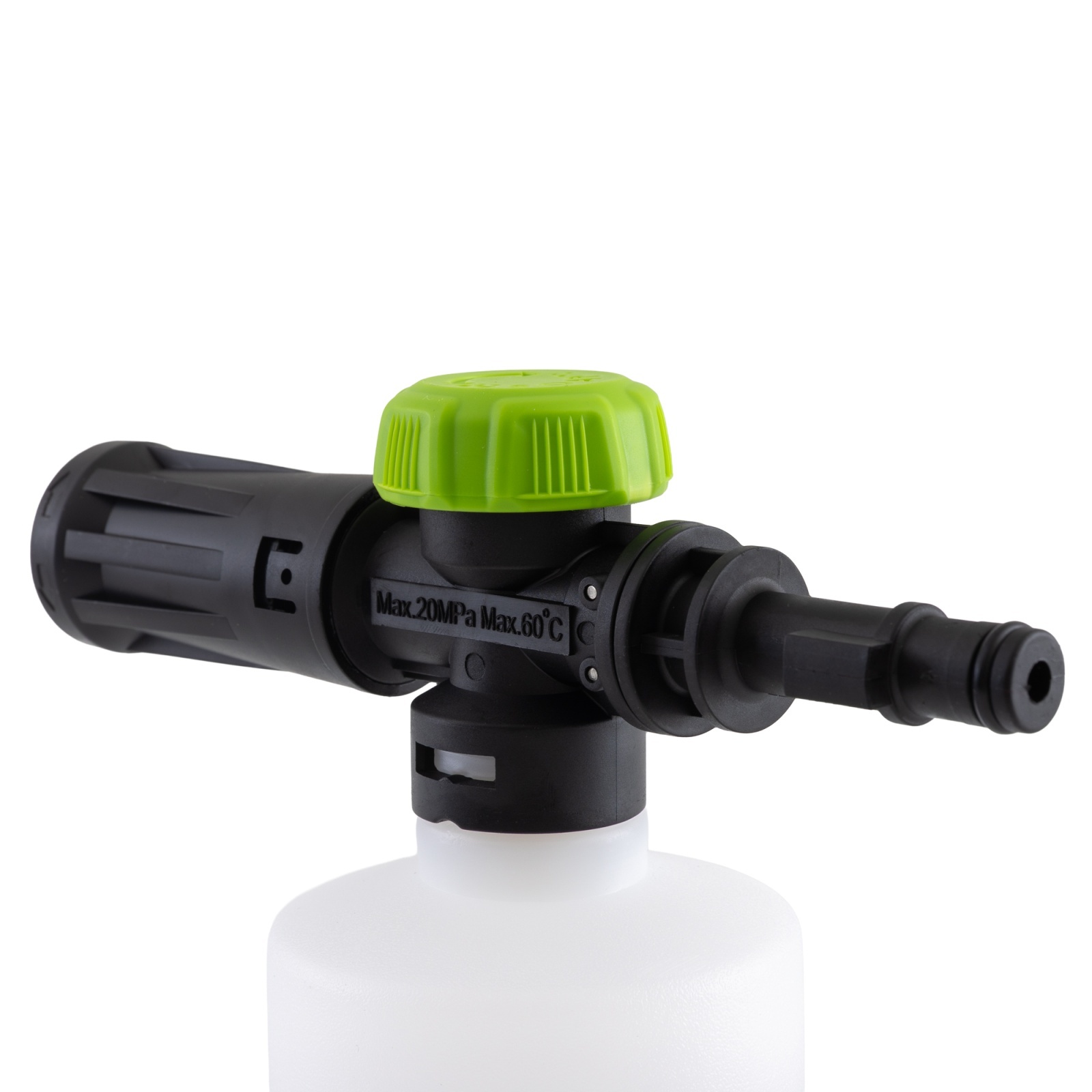 Mod de utilizare: umple recipientul cu soluție de curățare conform recomandărilor producătorului, conectează duza la aparat prin sistemul rapid și aplică spuma pe suprafața dorită. Lasă produsul să acționeze, apoi clătește corespunzător.